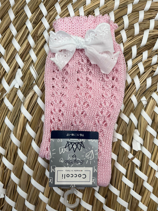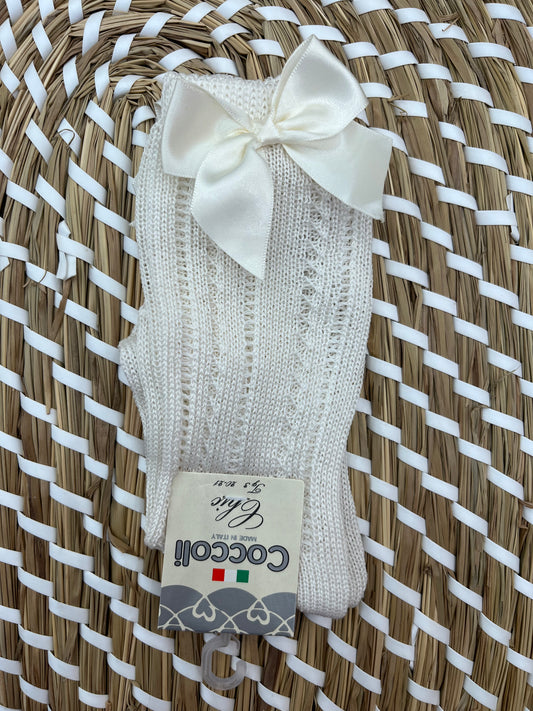 Prezzo di listino €15,00Prezzo di listinoPrezzo unitario / perPrezzo scontato €15,00Calzino Lungo In Cotone Con Motivo Traforato E Fiocco In Raso Applicato COCCOLI NL1218F