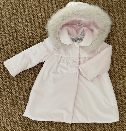 Prezzo di listino €125,00Prezzo di listinoPrezzo unitario / perPrezzo scontato €125,00Cappottino per neonata reversibile rosa e bianca