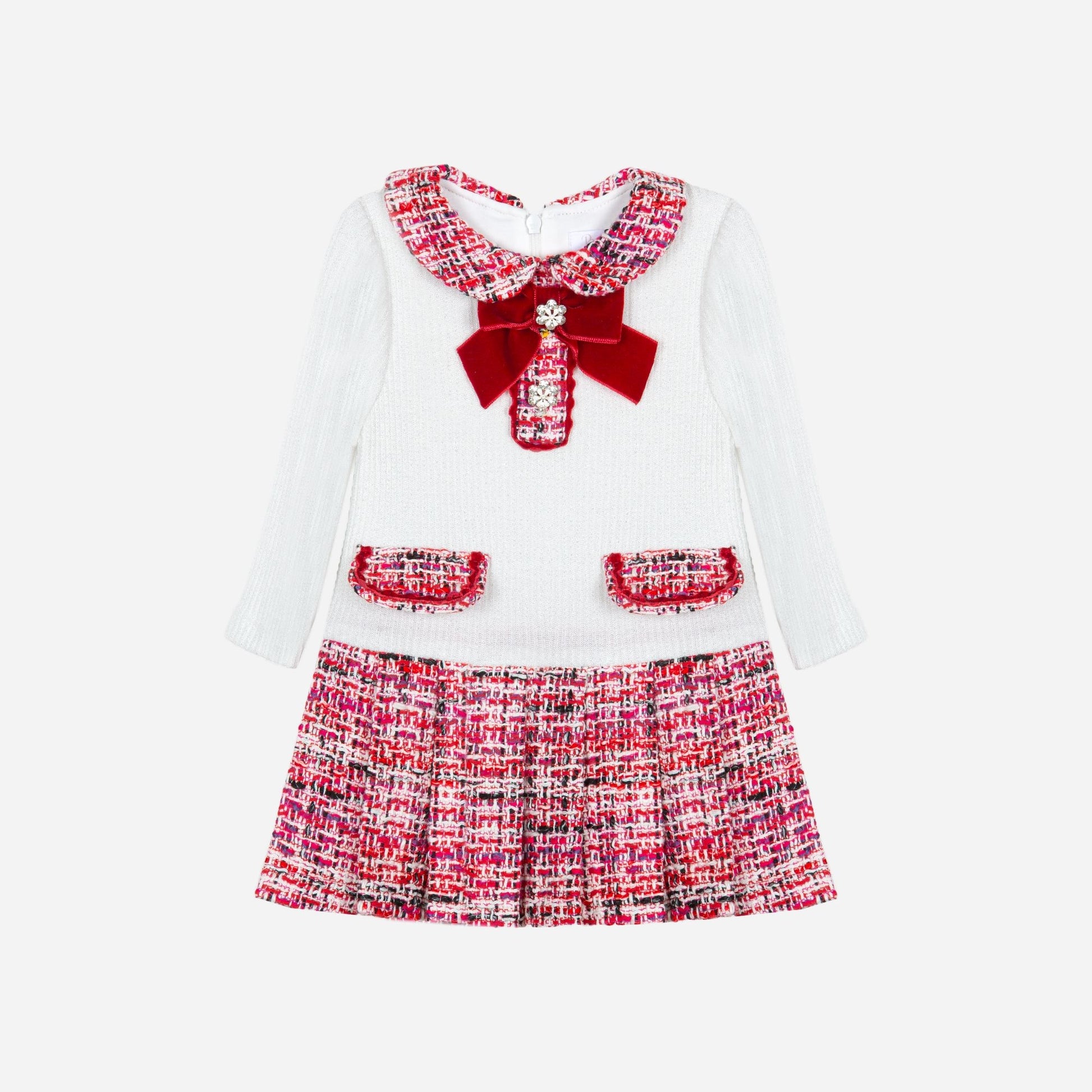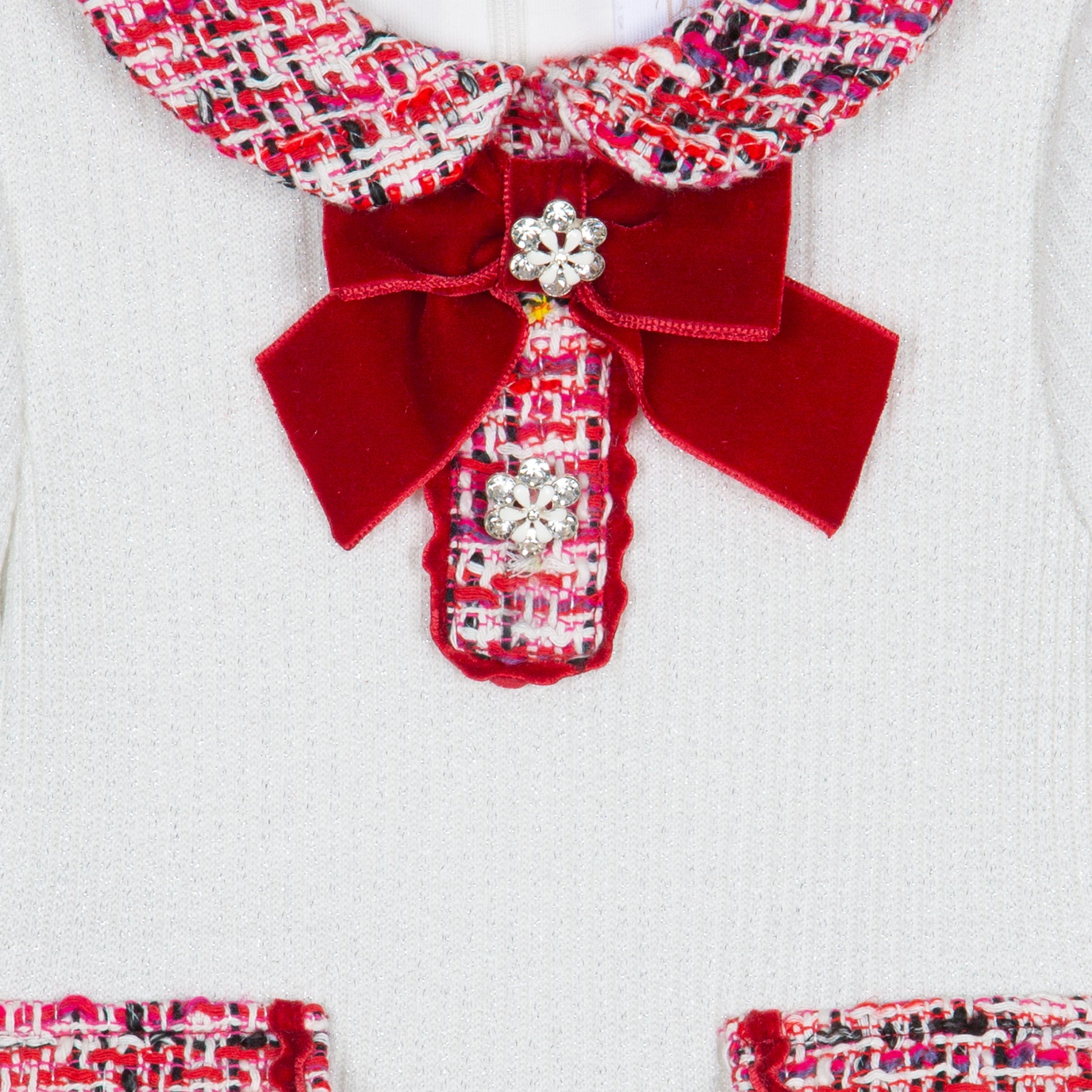 Abito comodo ed elegante con dettagli gioiello, fiocco in velluto.