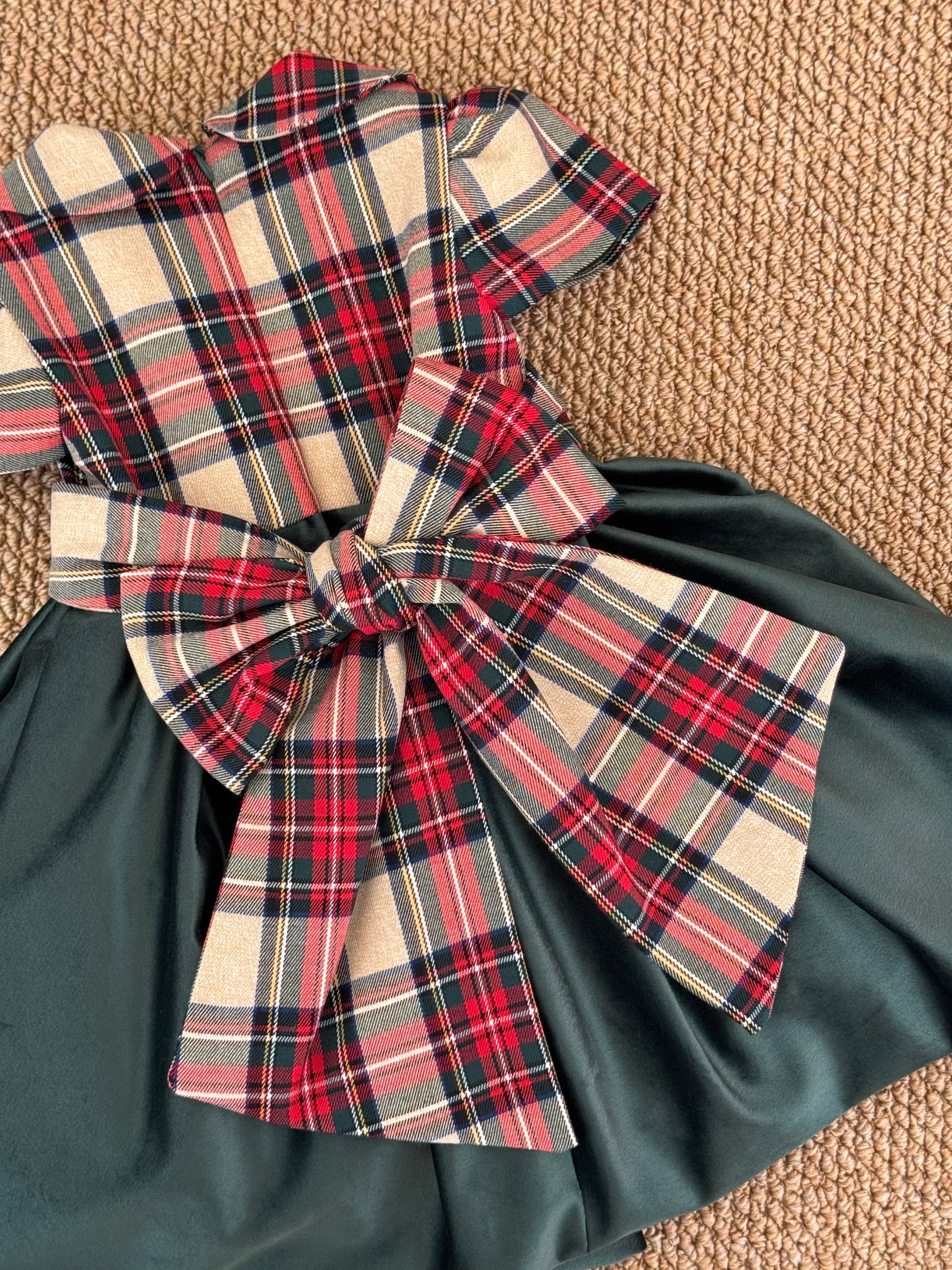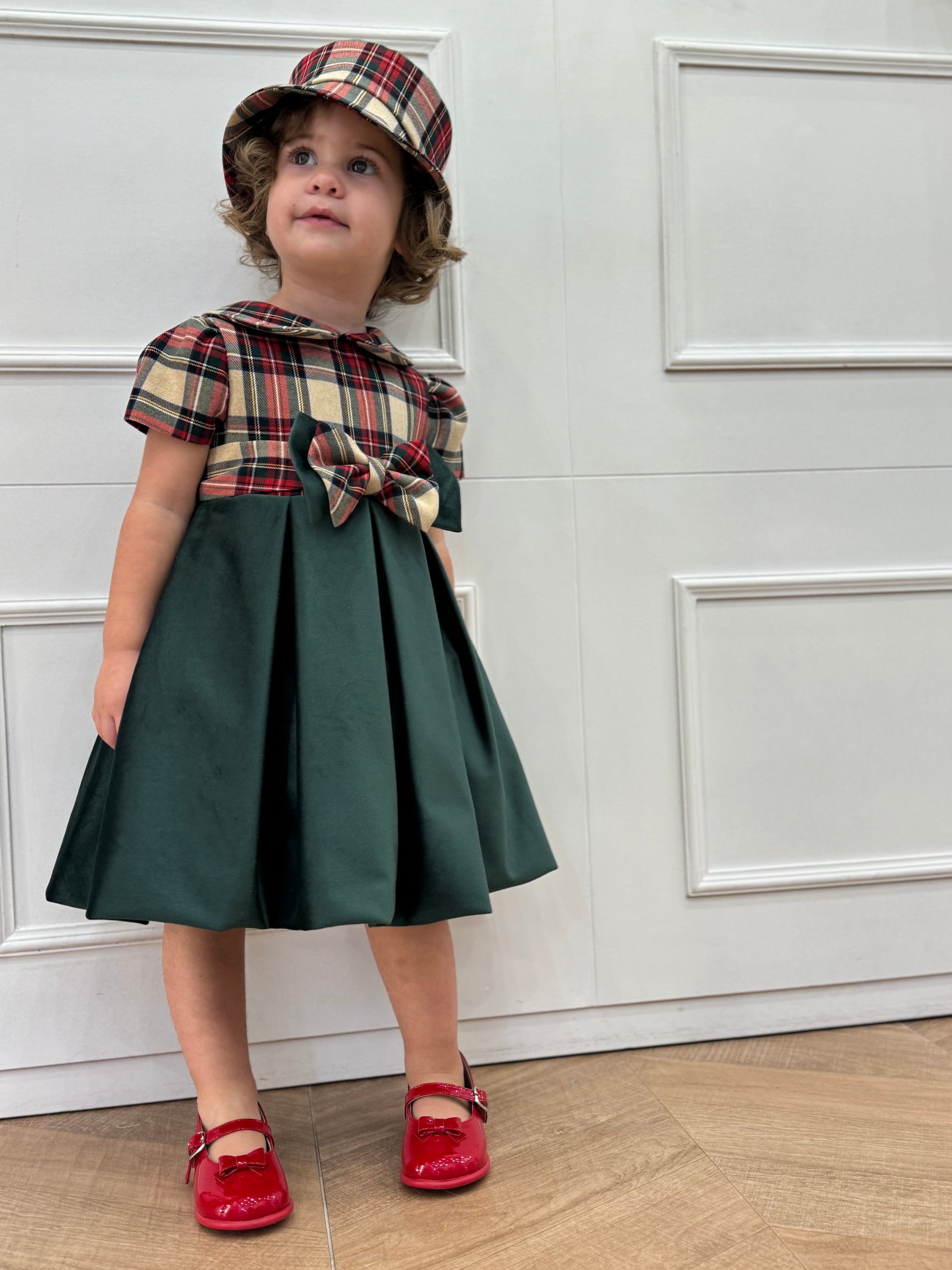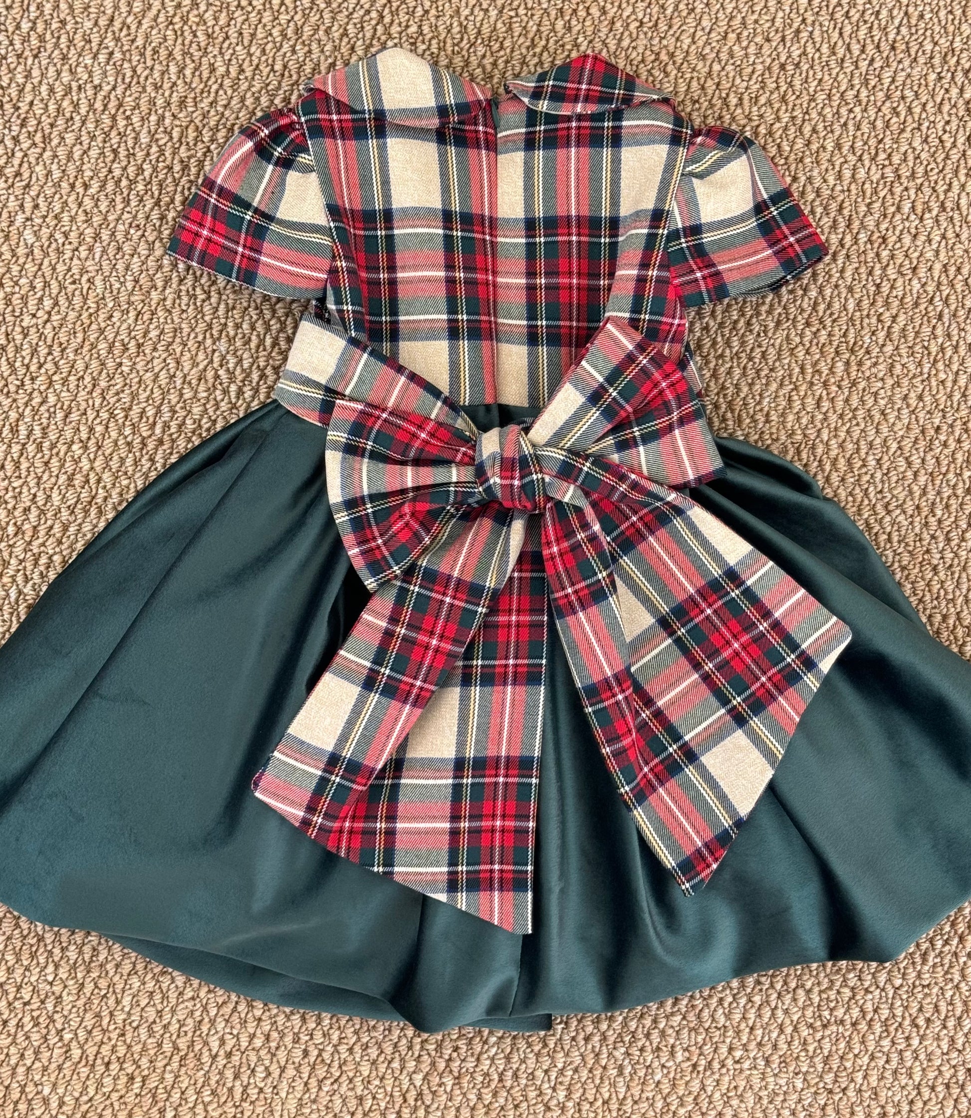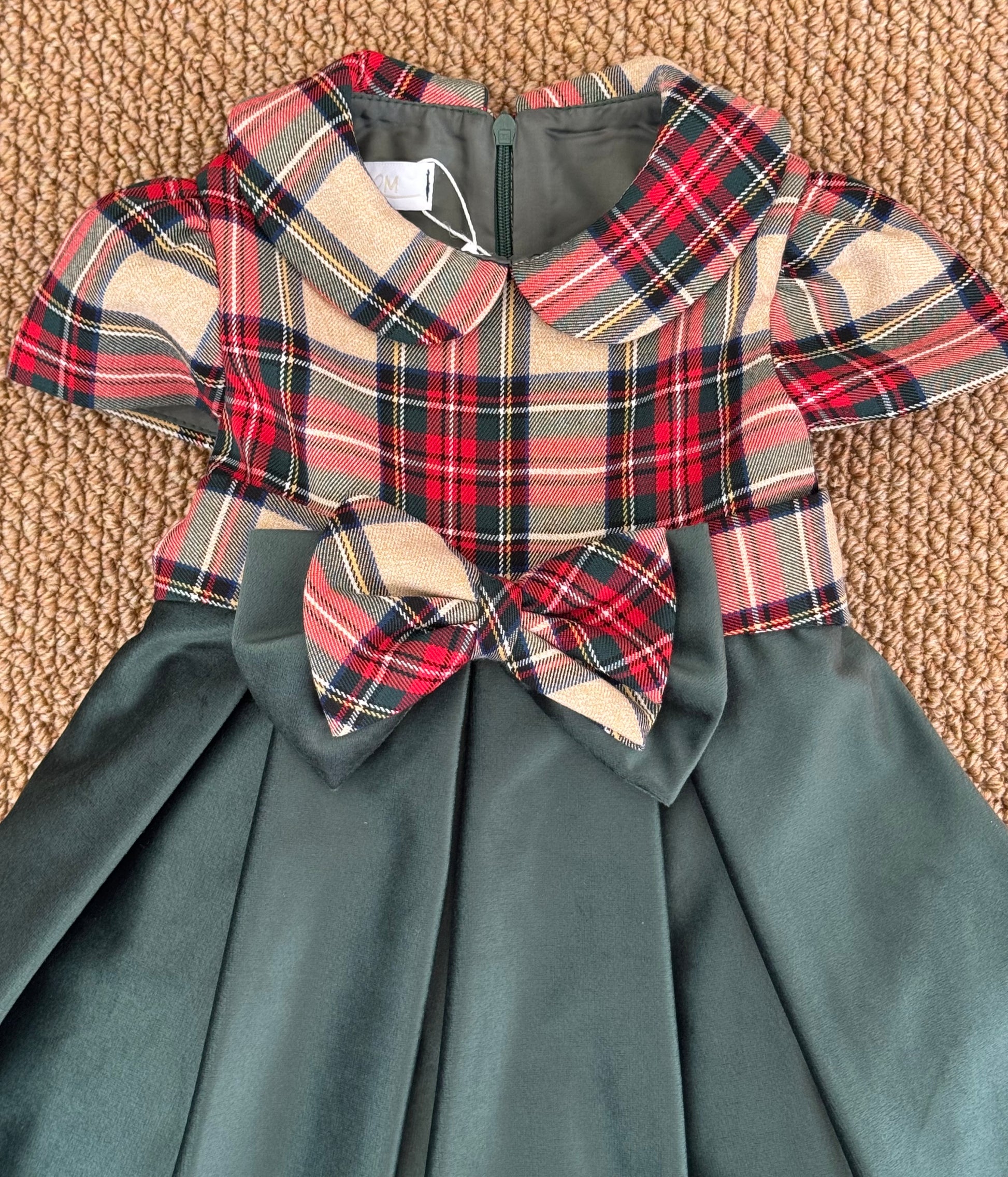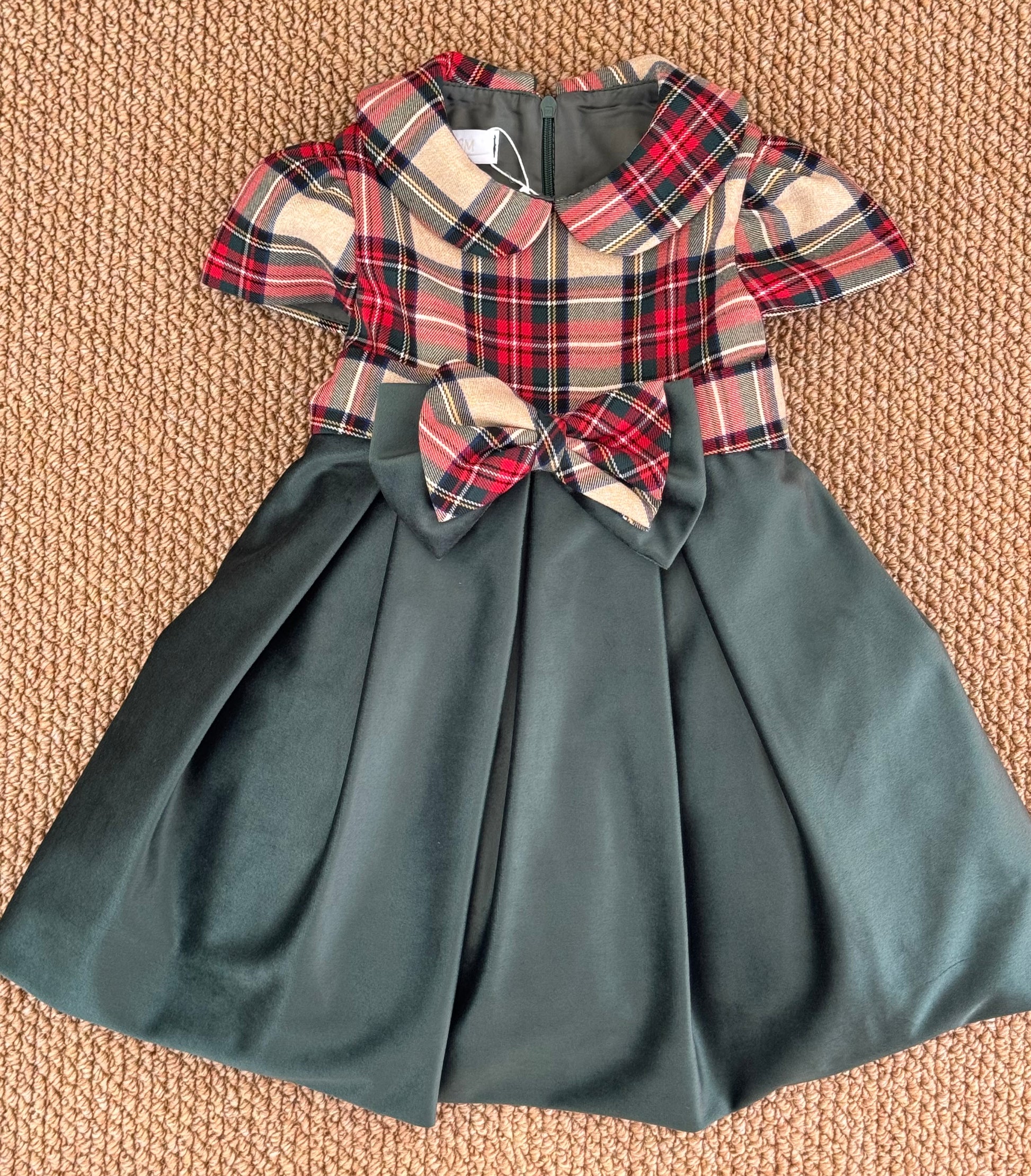 ABITO BIMBA MEZZA MANICA DOPPIO TESSUTO TARTAN E VELLUTO LISCIO CON SOTTO FODERA E TULLE CHIUSURA SUL RETRO CON ZIP INVISIBILE