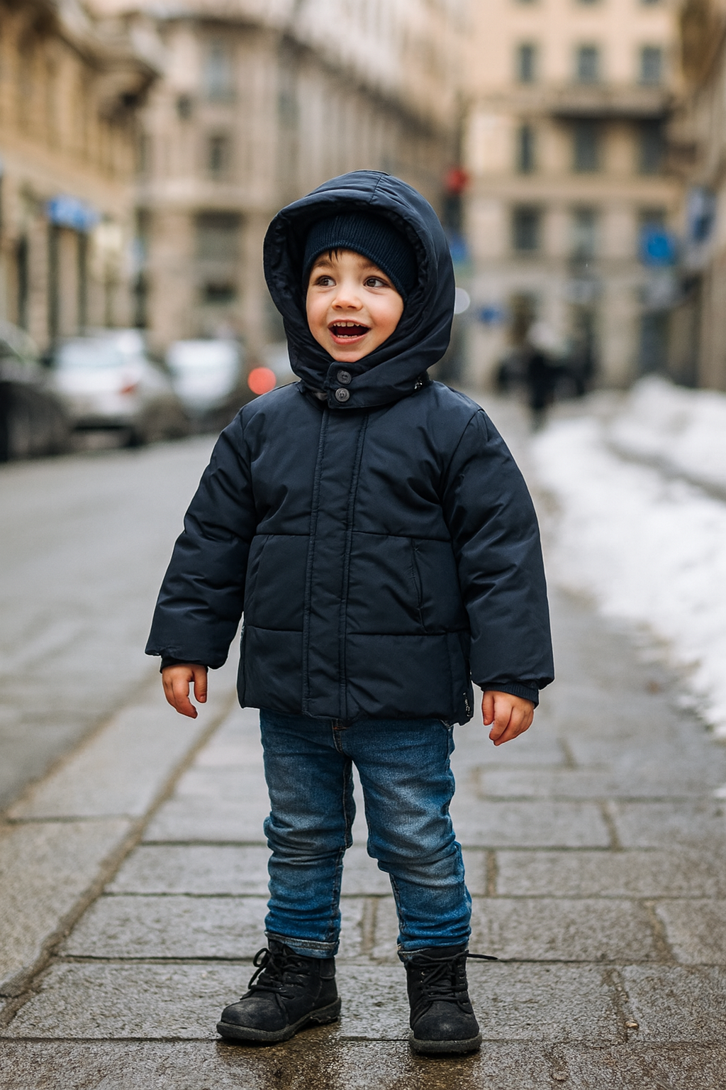 Parka in tessuto tecnico per bambini, ideale per l'inverno. Il suo design a tinta unita blu navy è versatile e facile da abbinare. Il parka è dotato di un cappuccio staccabile, perfetto per adattarsi alle condizioni atmosferiche. La chiusura a scatto è semplice e sicura. Le maniche lunghe offrono una protezione totale contro il freddo. Il tessuto tecnico è resistente e durevole.