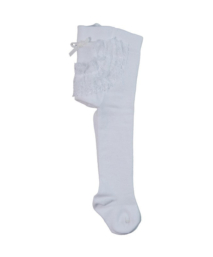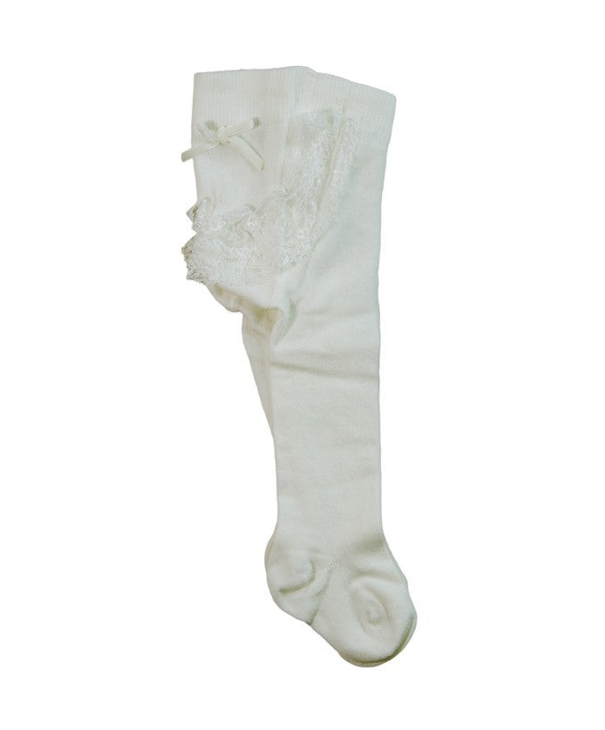 Collant neonato in cotone elasticizzato con rouche di pizzo e con elegante fiocco di velluto applicato - MADE IN ITALY