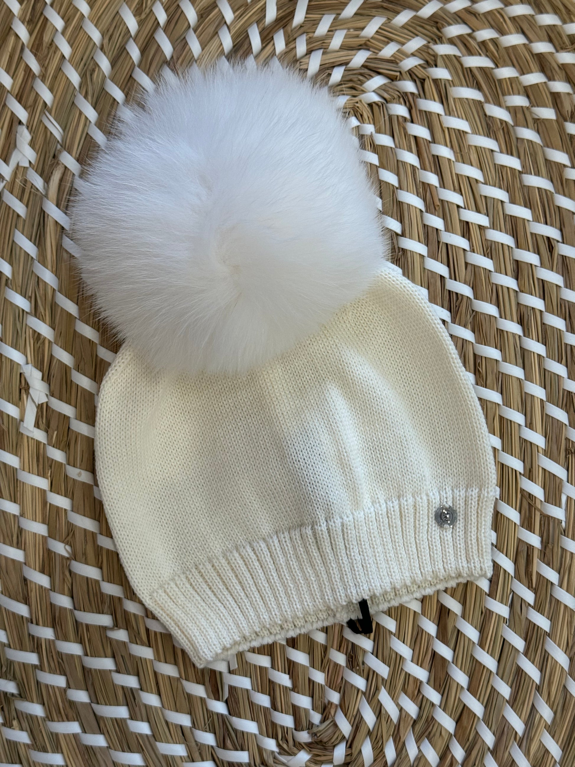 Cappello in lana con pompon in pelliccia naturale