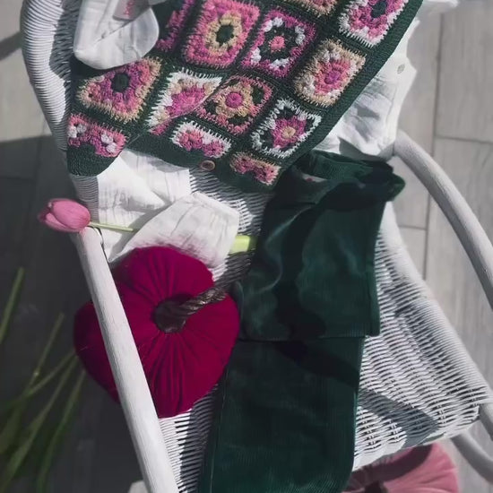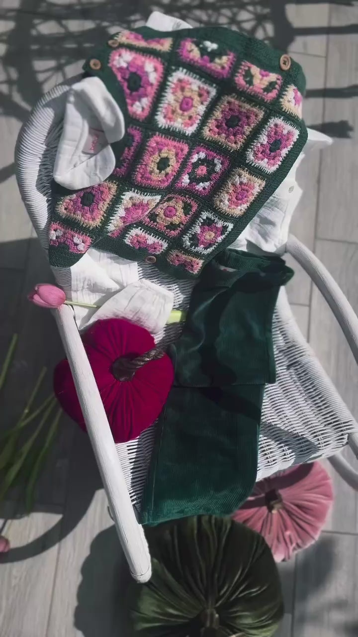 Gilet a maglia per bambina con design a quadri in tonalità verdi, ideale per le stagioni autunnali e invernali. Realizzato in un tessuto caldo e morbido che garantisce comfort e benessere alla tua piccola, offrendo al contempo un tocco incantevole e accogliente.