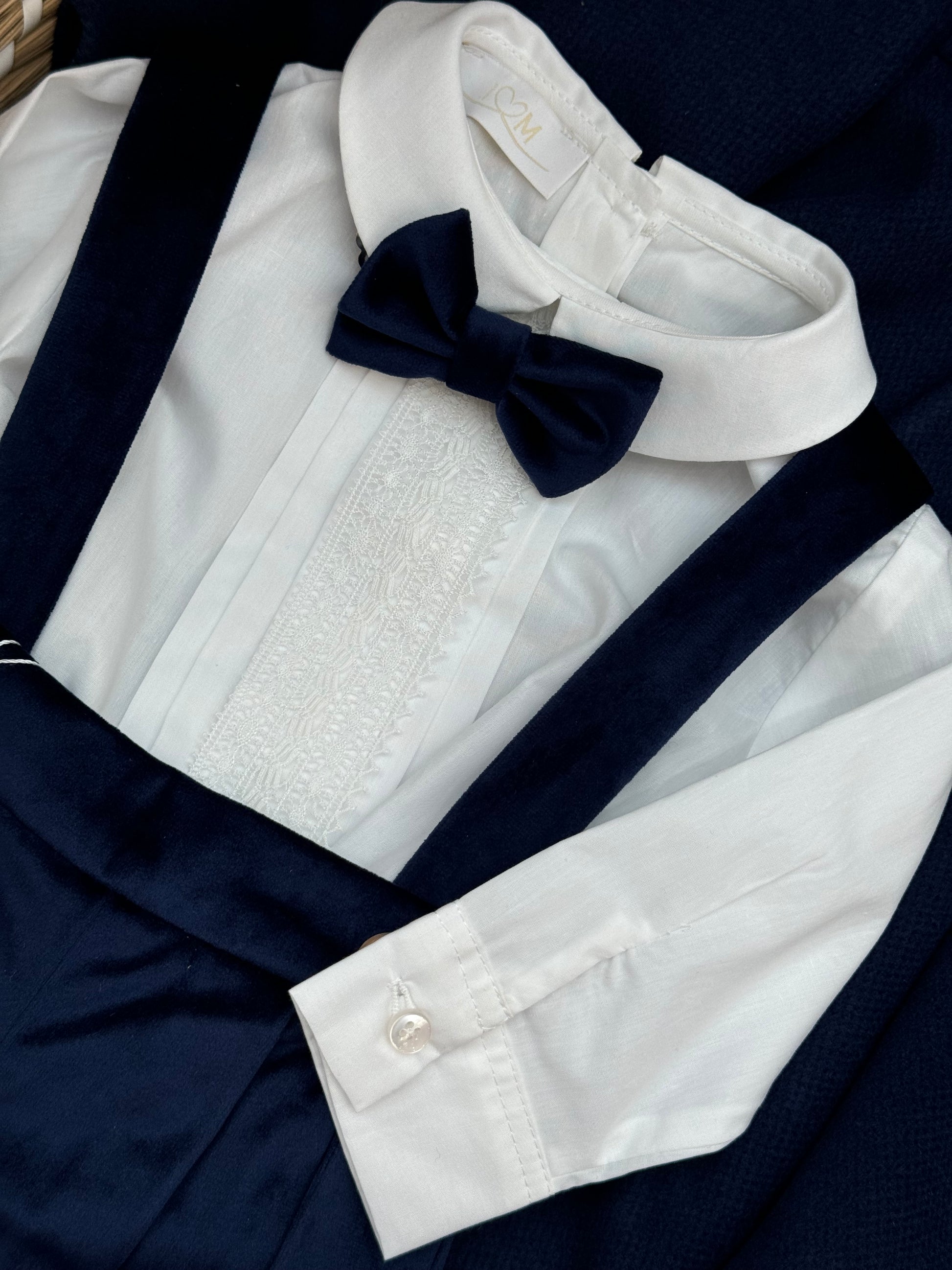 pantaloni corti al ginocchio stile inglese e bretelle tutto in velluto