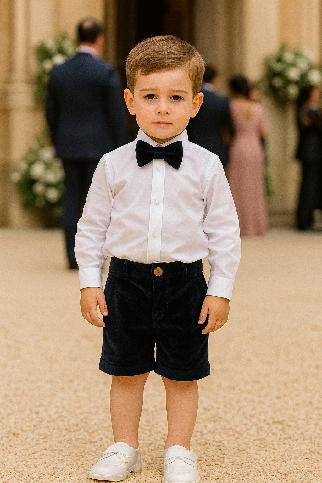 Nel complesso, il completo trasmette un’eleganza sobria e senza tempo , perfetto per un piccolo gentiluomo da cerimonia, curato in ogni dettaglio ma con un tocco dolce e infantile