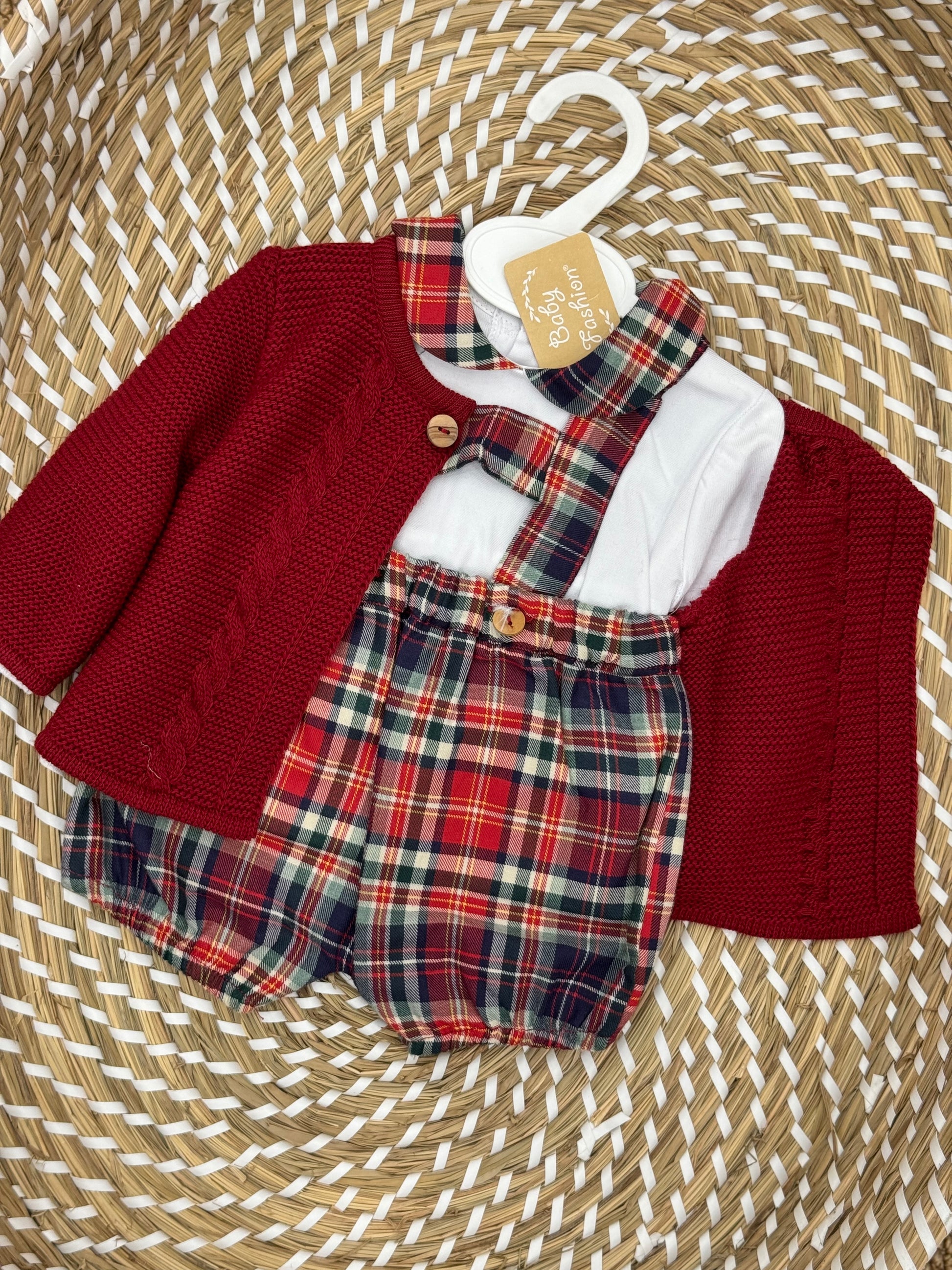 Questo delizioso completo da bambino è perfetto per le feste invernali o per un look elegante ma caldo e confortevole.