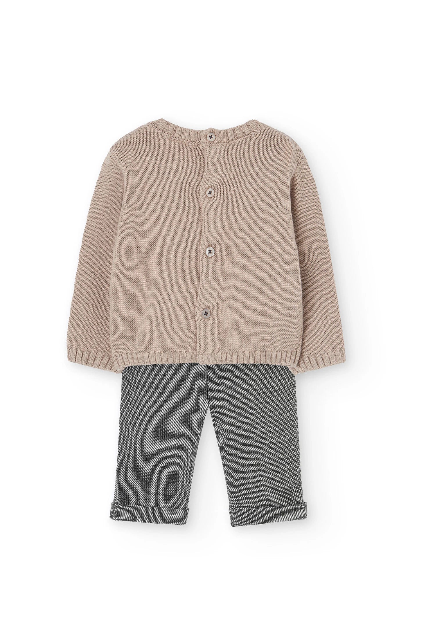 Set in maglia color beige per neonato, decorato con un delicato motivo di animali, perfetto per mantenere il tuo piccolo al caldo durante i mesi freddi. Include un maglione in maglia caldo e morbido, che combina comfort e stile, ideale per l'uso quotidiano. Realizzato in materiali di alta qualità, offre libertà di movimento e una vestibilità perfetta per bambini . I colori neutri consentono di abbinarlo ad altri accessori e capi, facilitando la creazione di un look tenero e armonioso. Un'opzione imprescindibile per genitori che cercano funzionalità con un tocco di dolcezza.