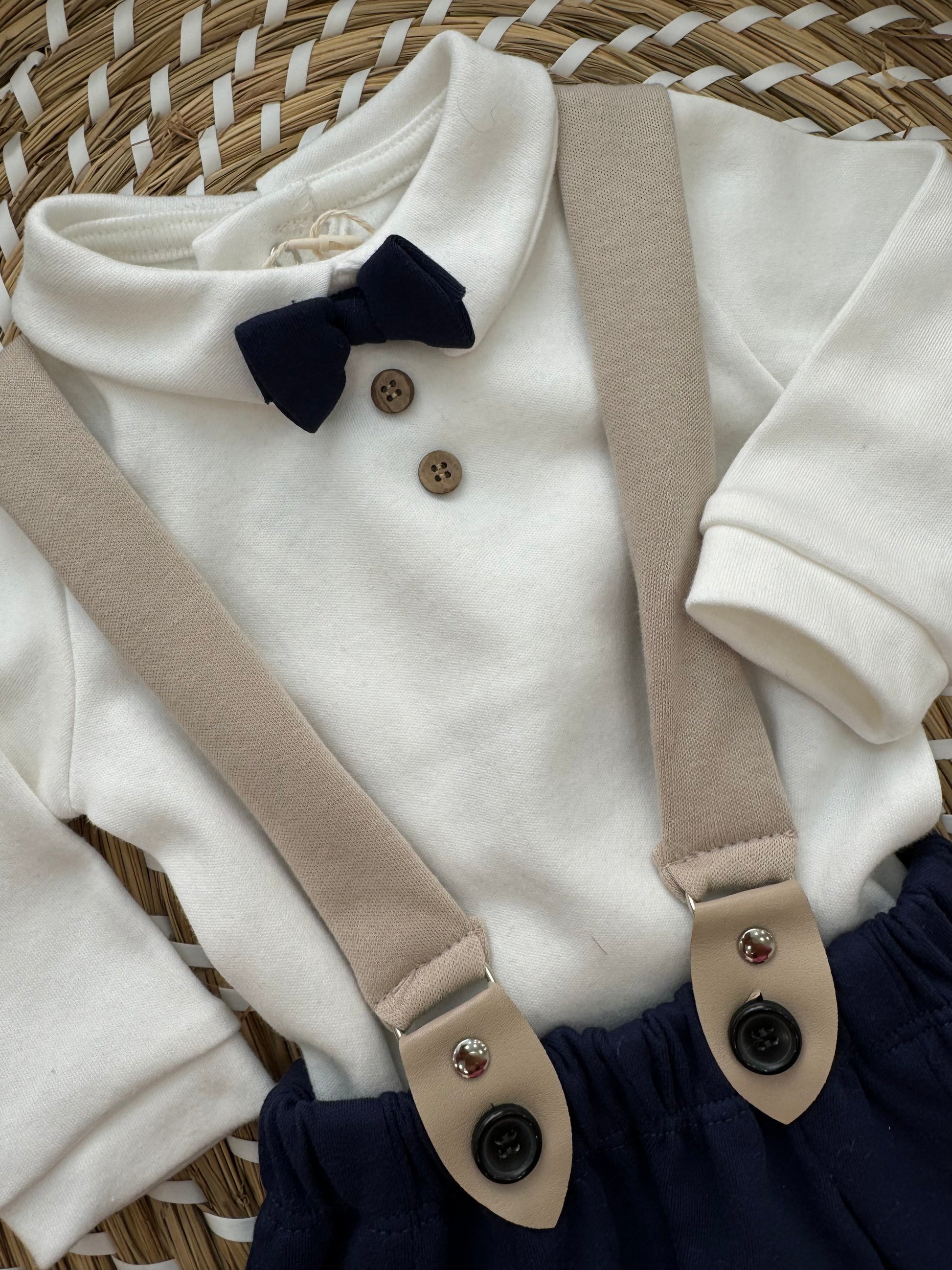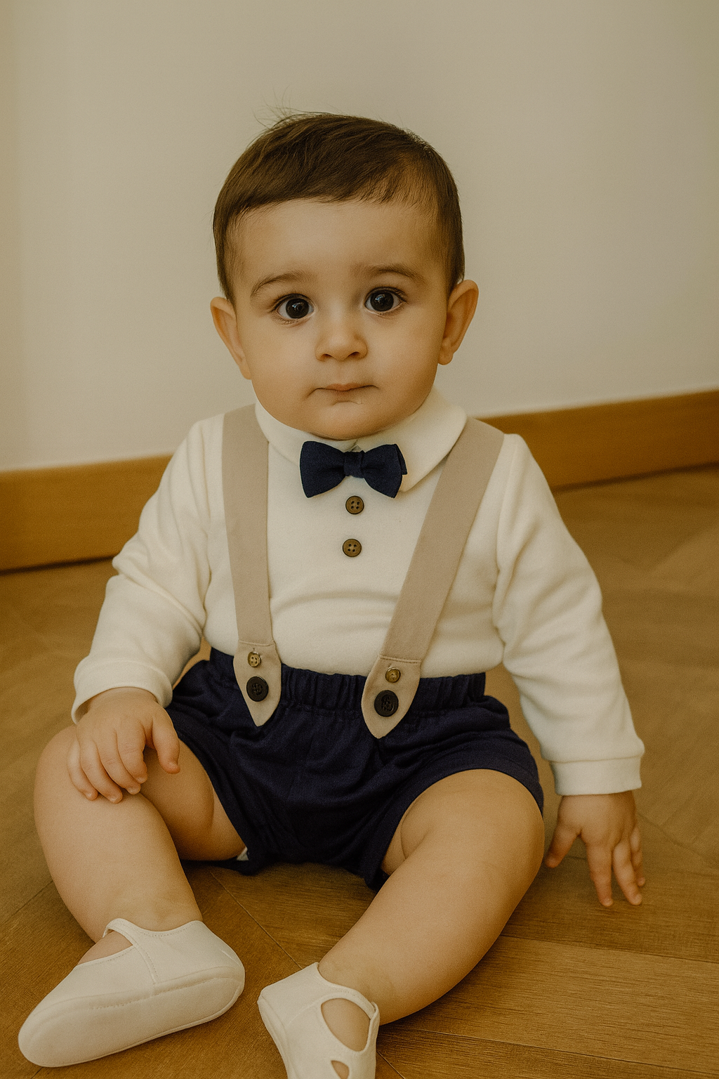Questo completo per bambino è un outfit raffinato e senza tempo, perfetto per occasioni speciali, cerimonie o servizi fotografici.
