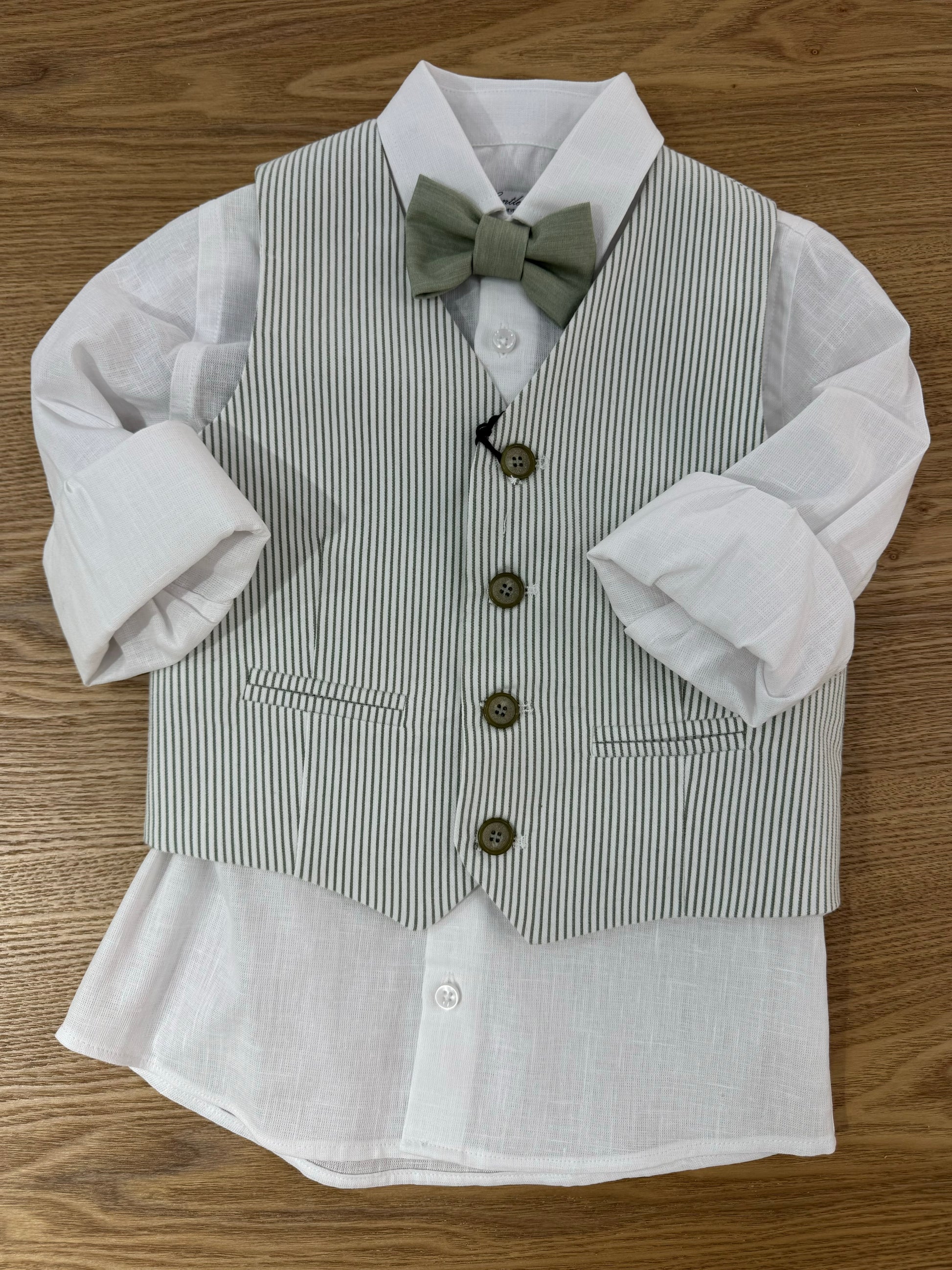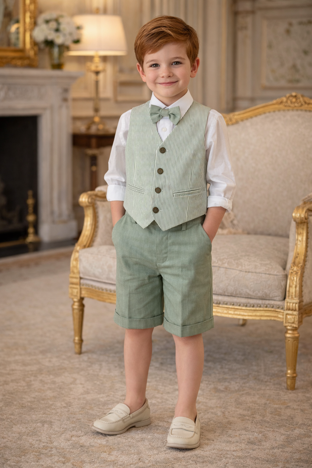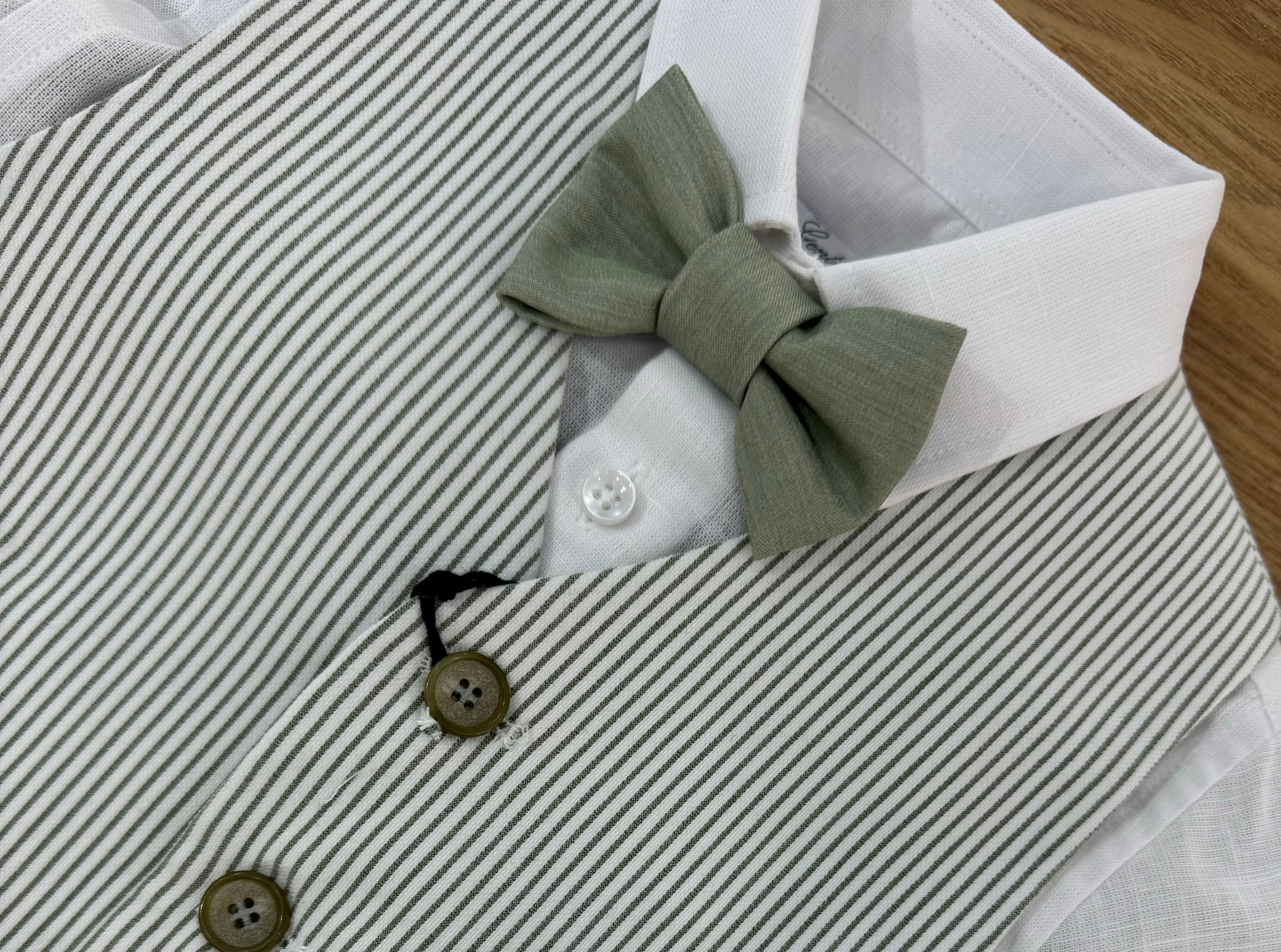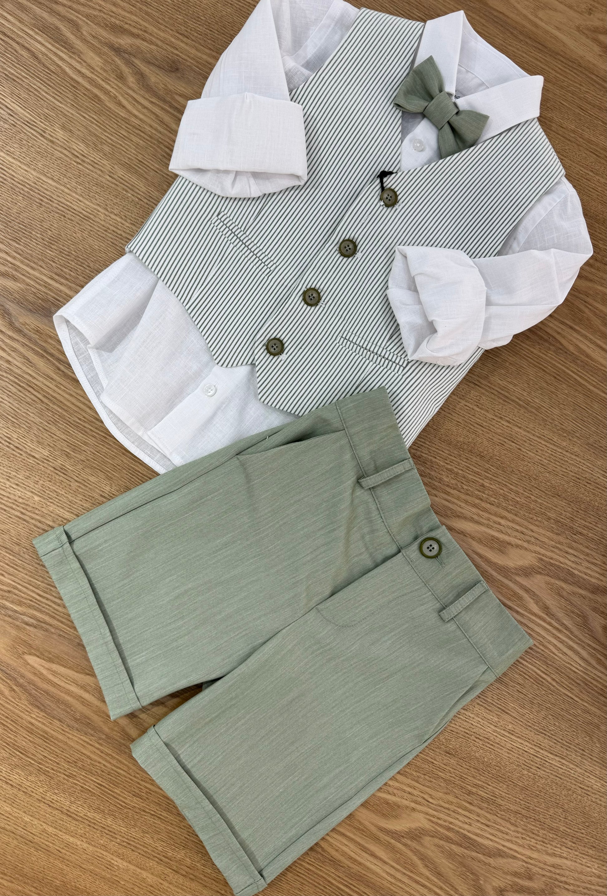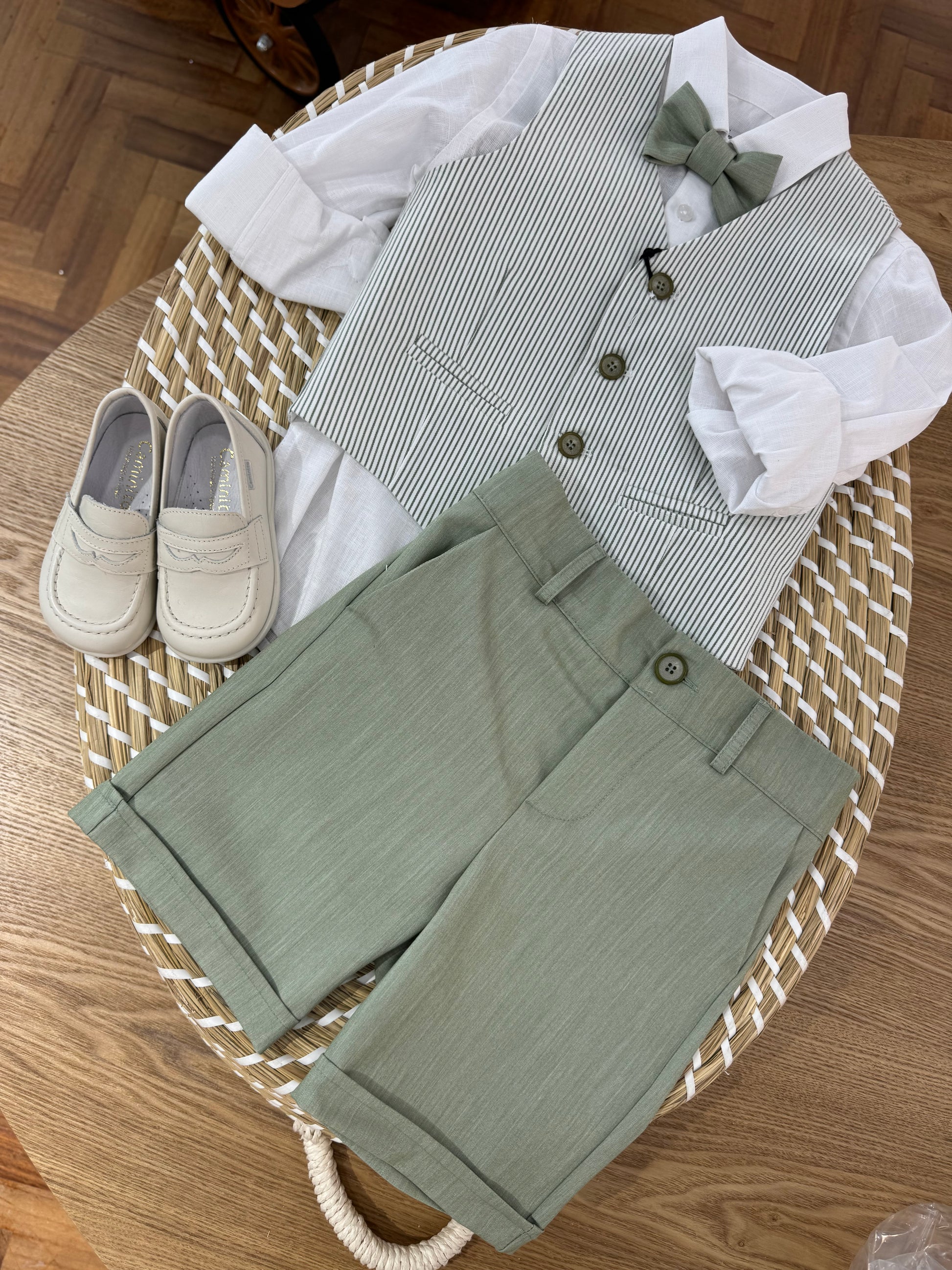• Papillon coordinato verde salvia, perfettamente abbinato al pantalone corto.