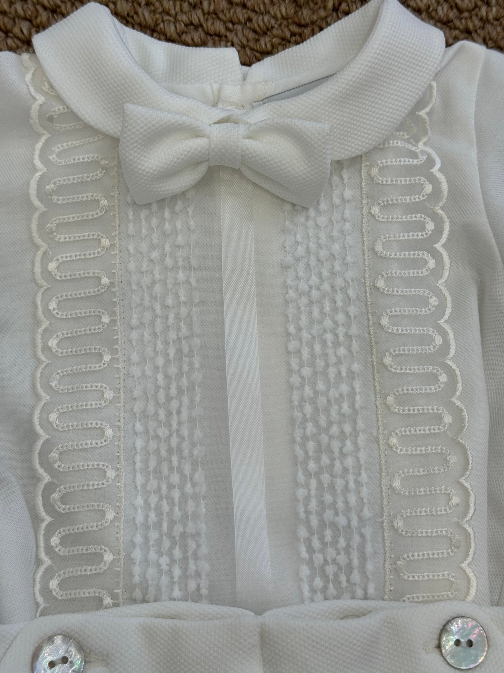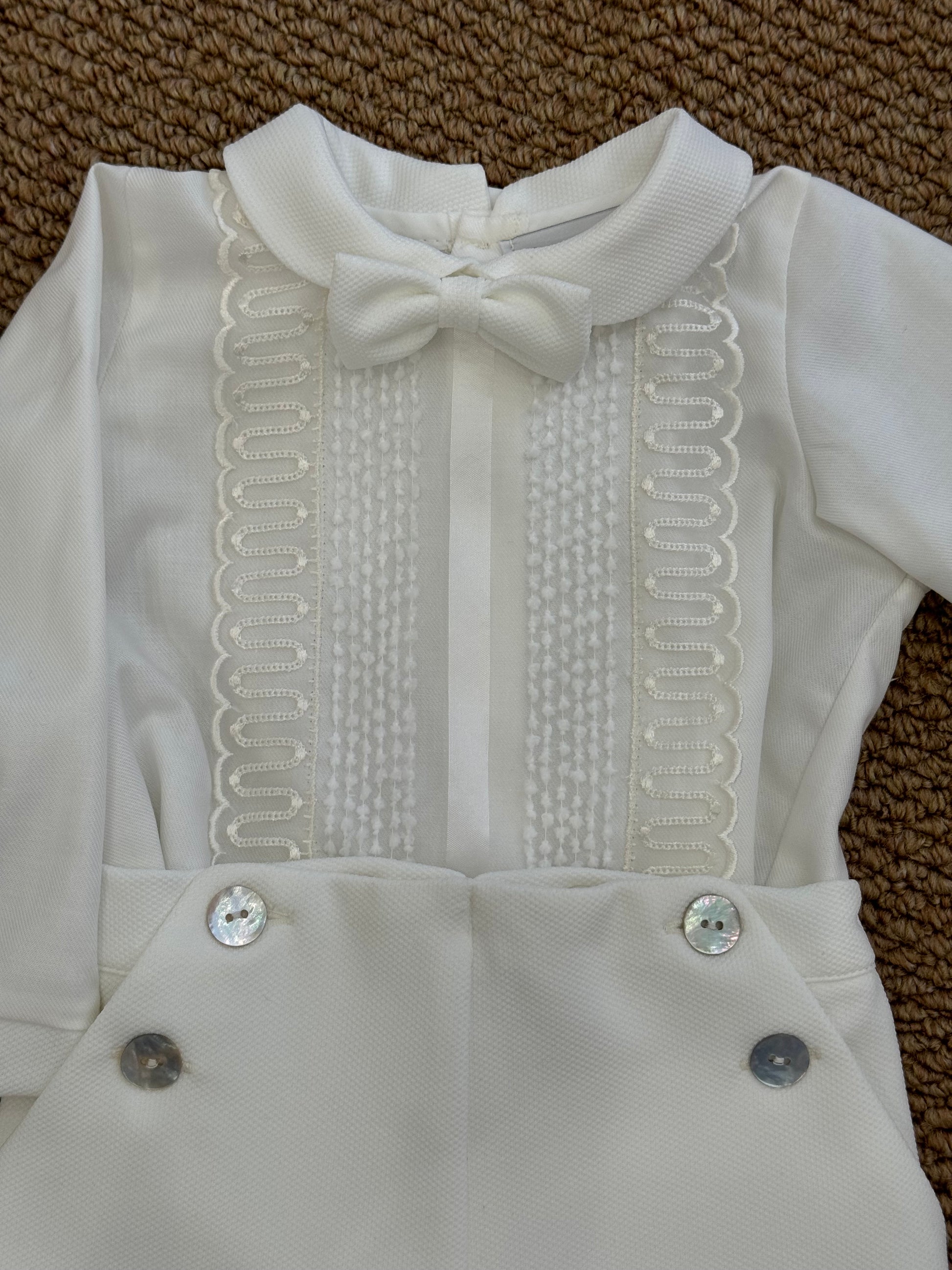il completo porta i bottoni all interno del pantalone per agganciare la camicia.