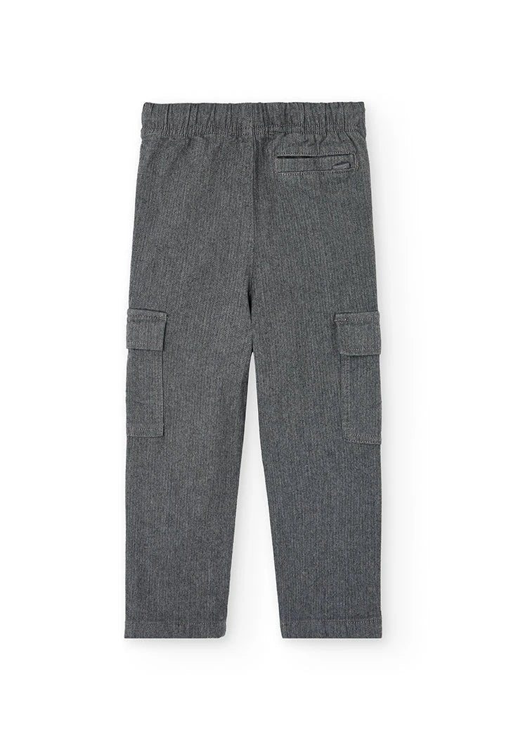 Pantalone per bambino in colore grigio scuro, ideale per le stagioni autunnali e invernali grazie al suo tessuto morbido che offre comfort e calore. Il suo design classico include una vita elastica che assicura una vestibilità comoda per i più piccoli.