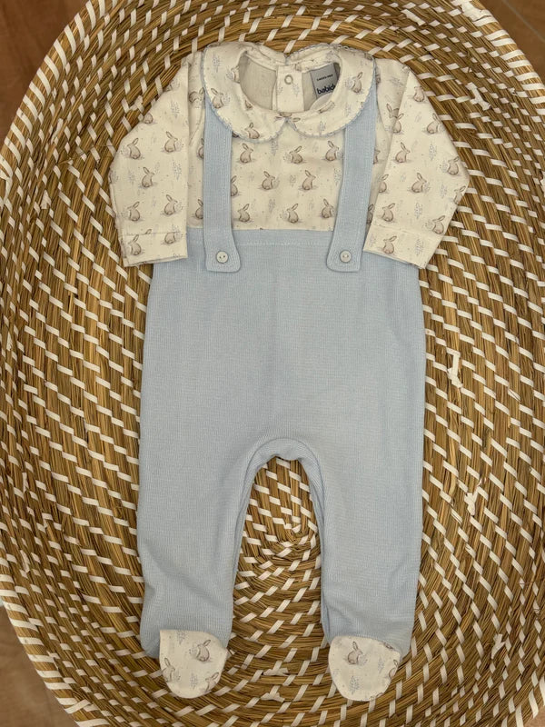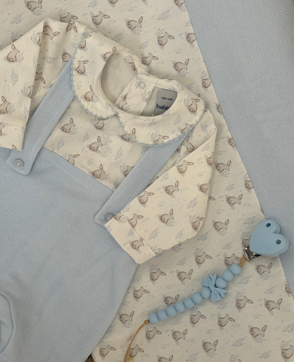 Set uscita clinica composta da coperta e tutina in calda maglina effetto salopette con fantasia coniglietto BABIDU