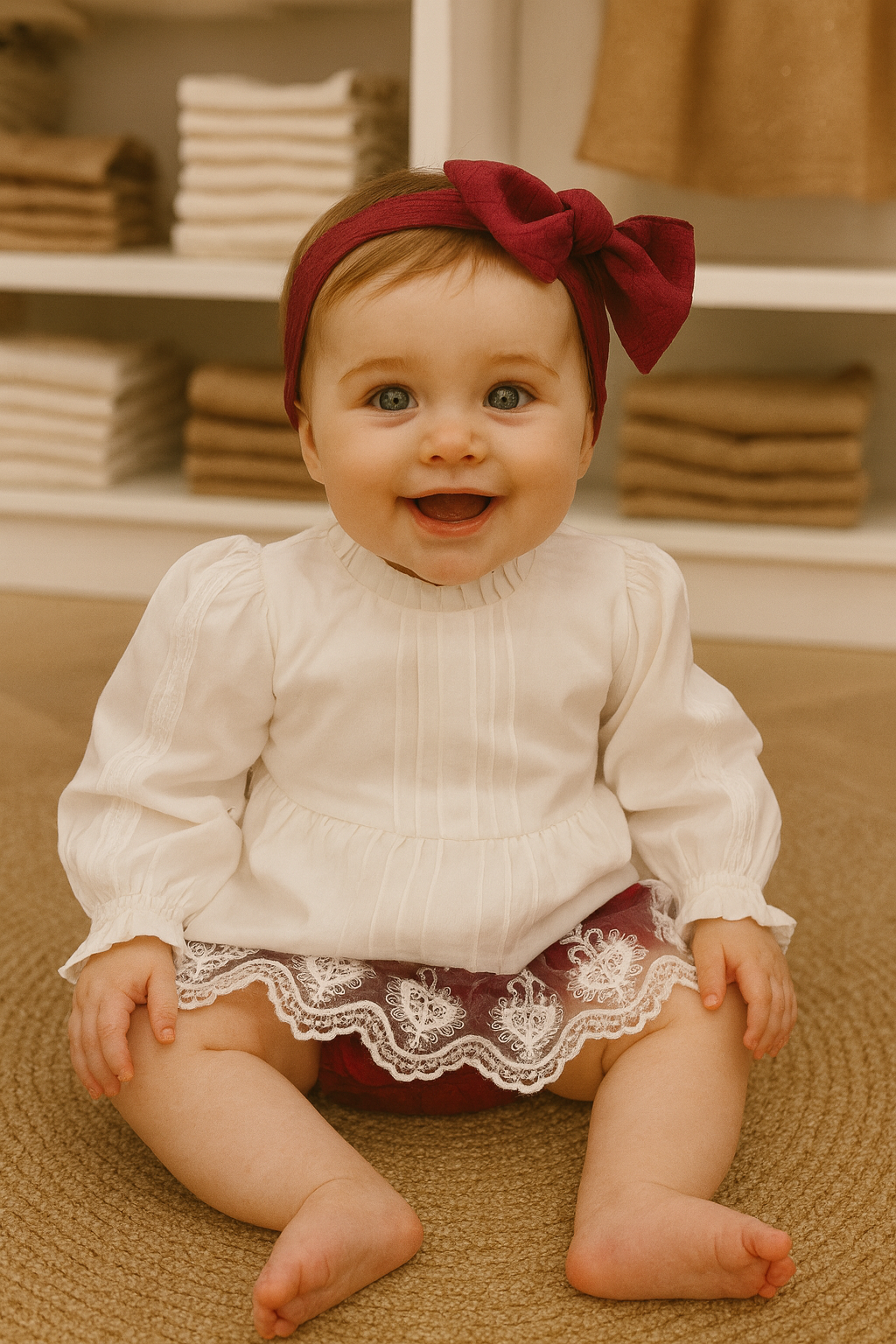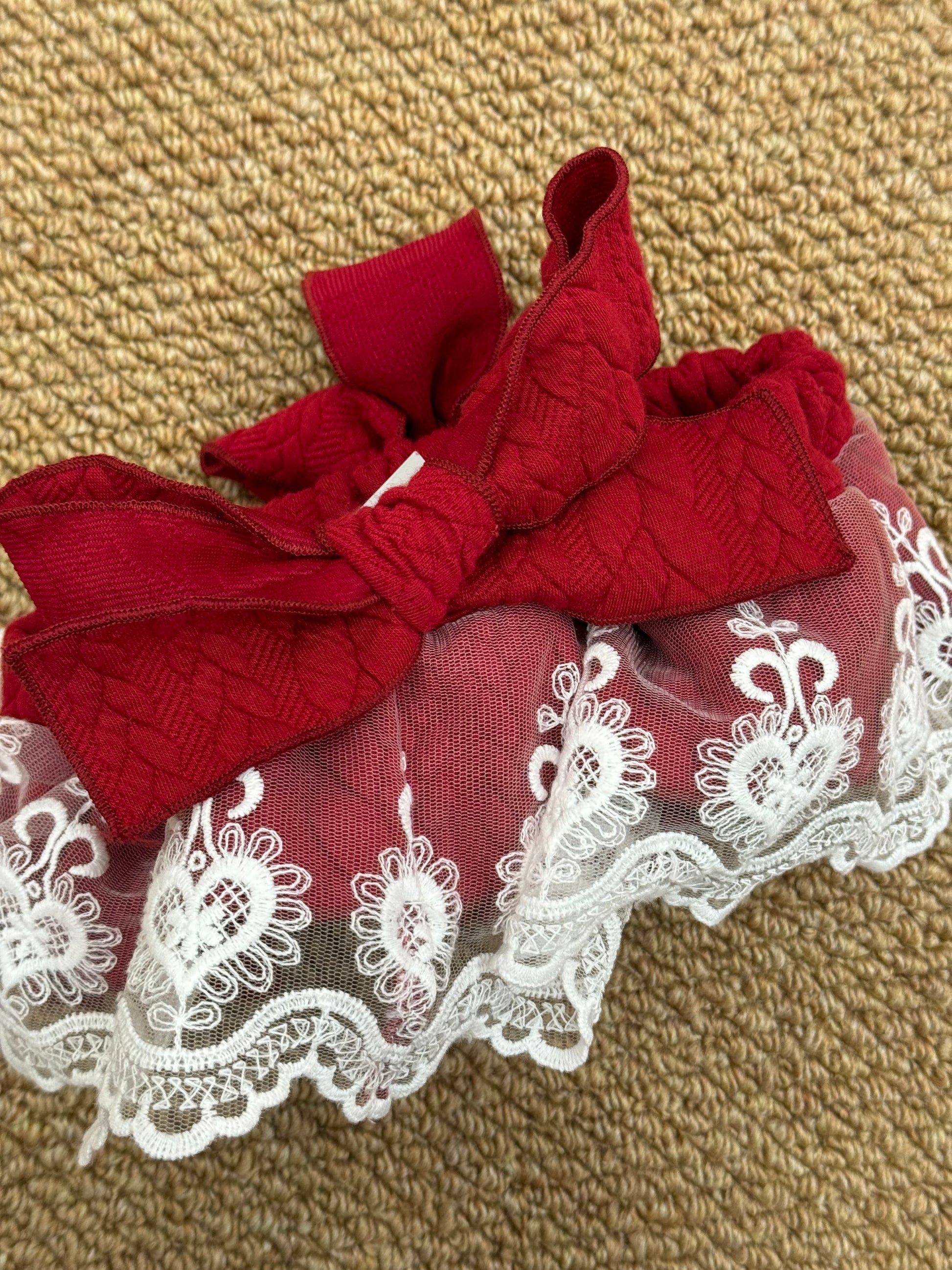 Culottina con fiocchi laterali e pizzo in tessuto trapuntato