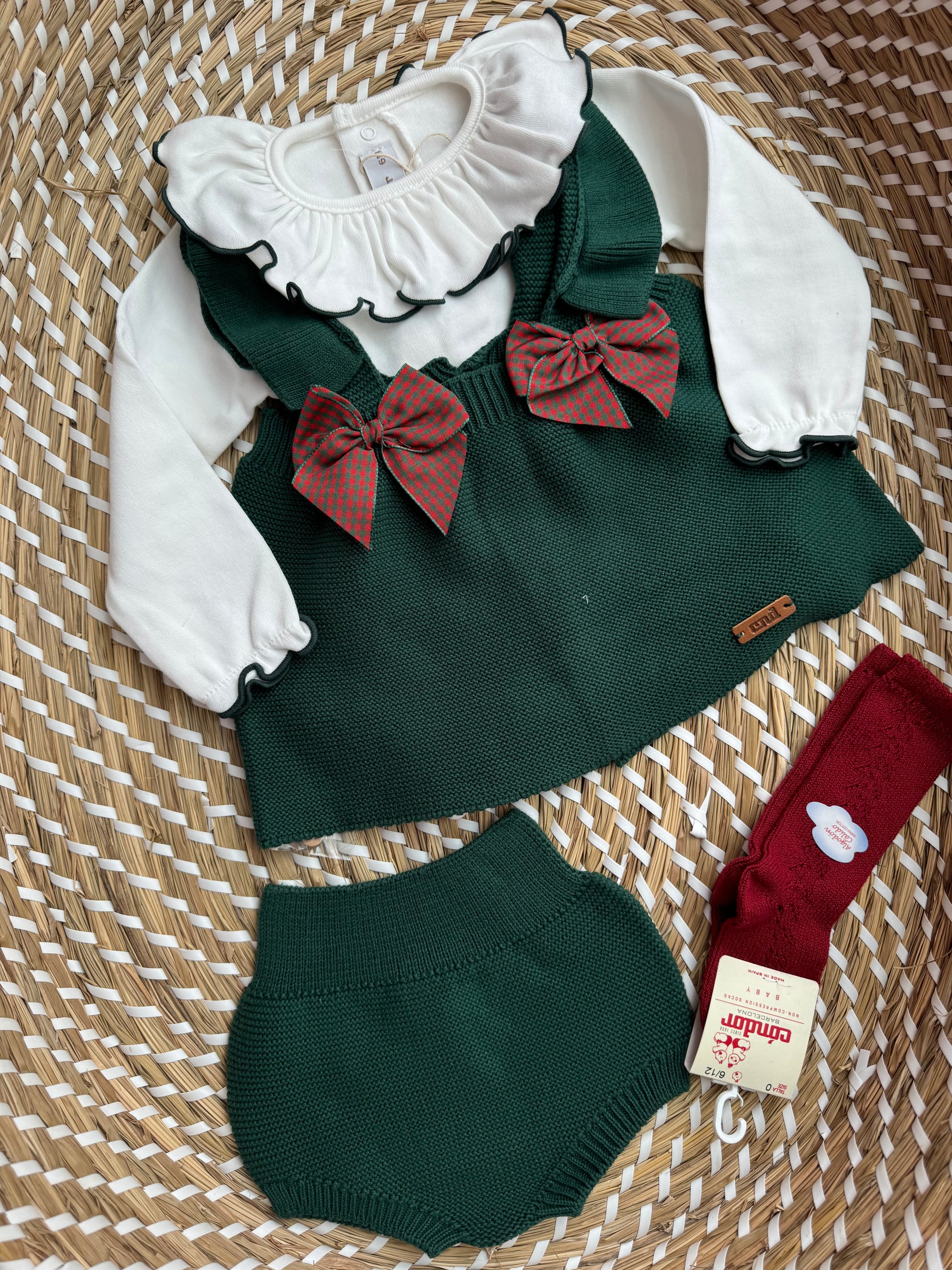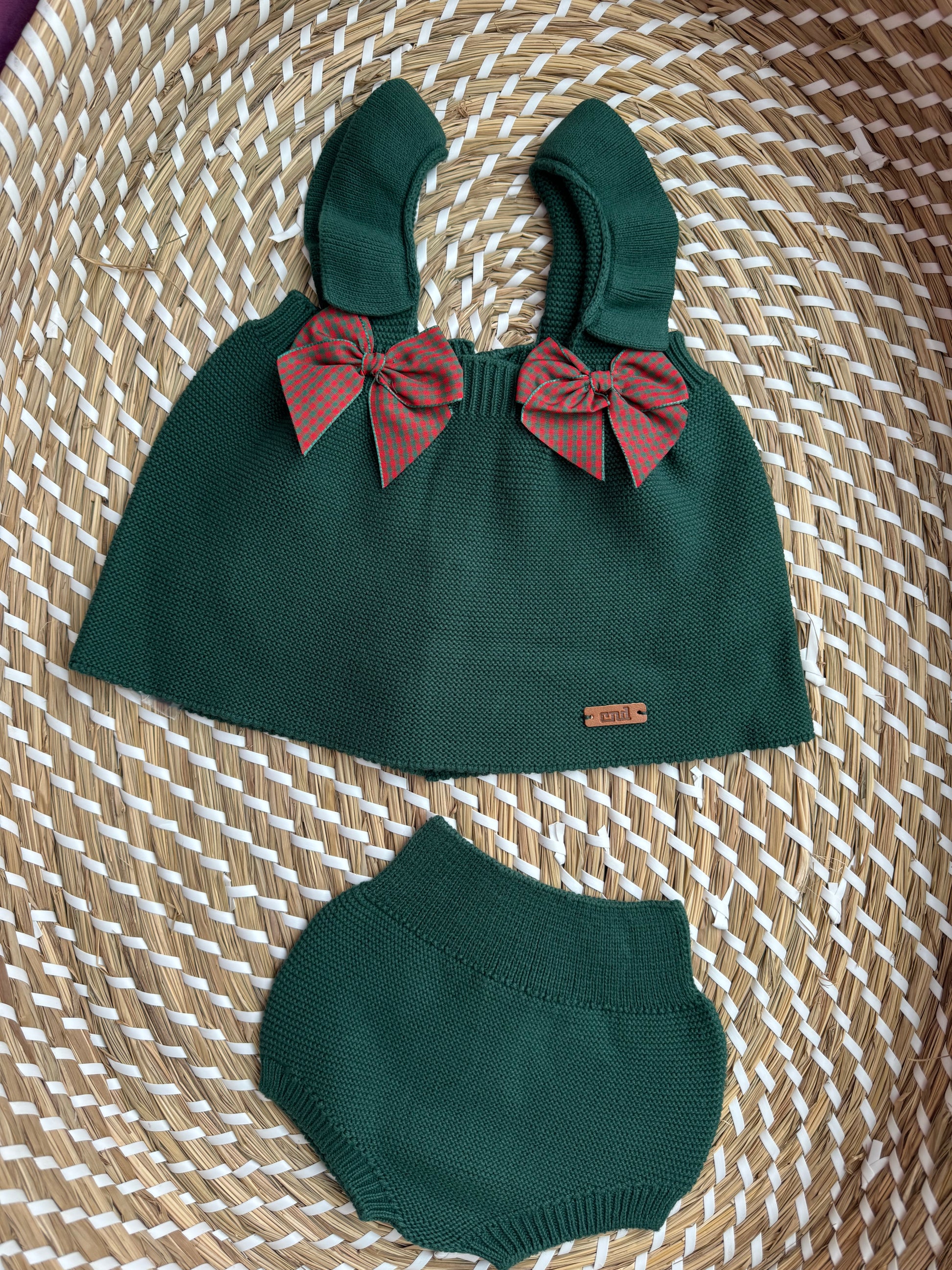 Completo composto da casacchina con bretelle particolari con volant in maglia cotone caldo doppio, più culottina.