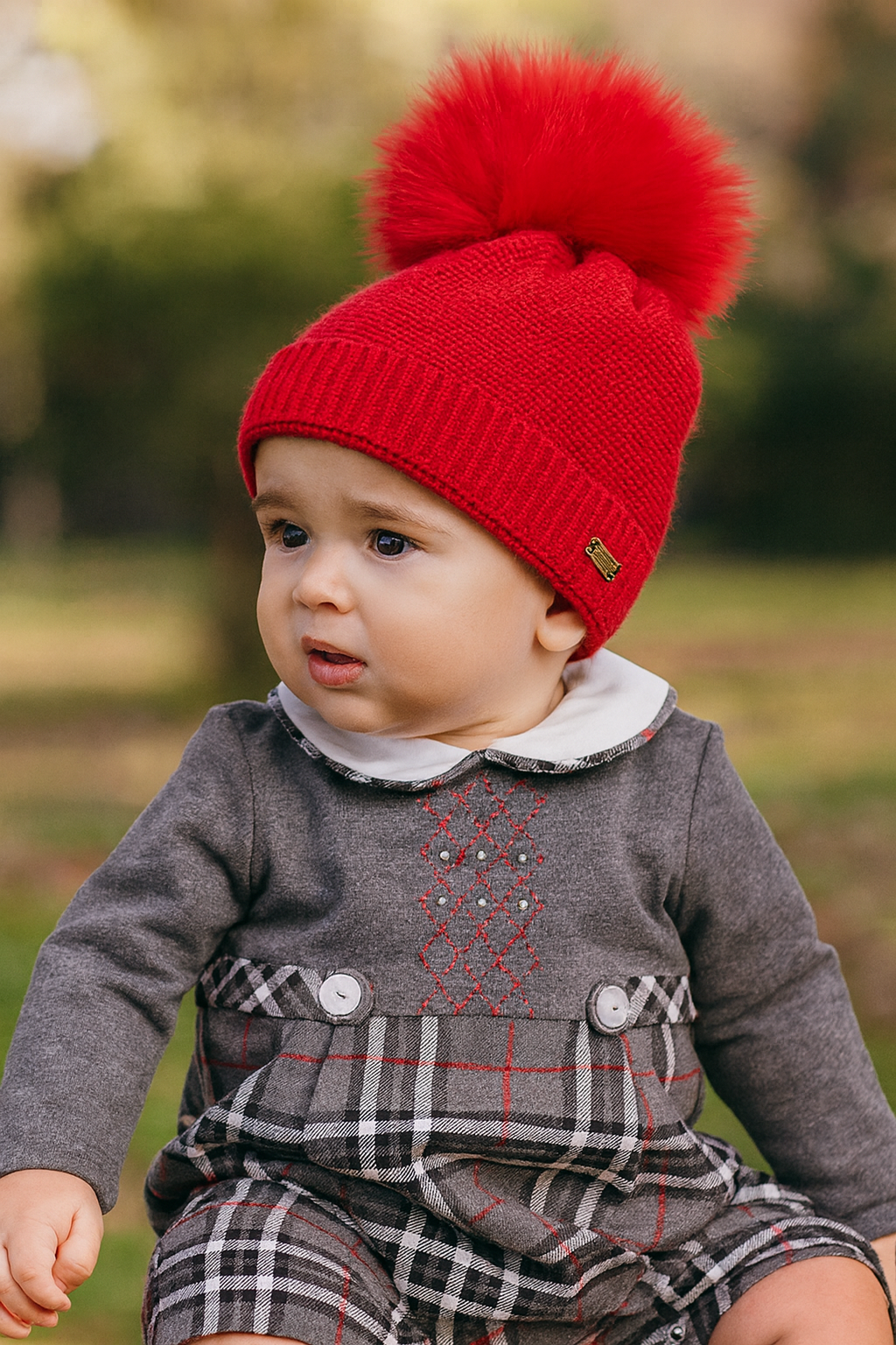 Pagliaccetto tartan dalle tonalità del grigio e rosso, bottoni in madreperla e ricamo sul davanti
