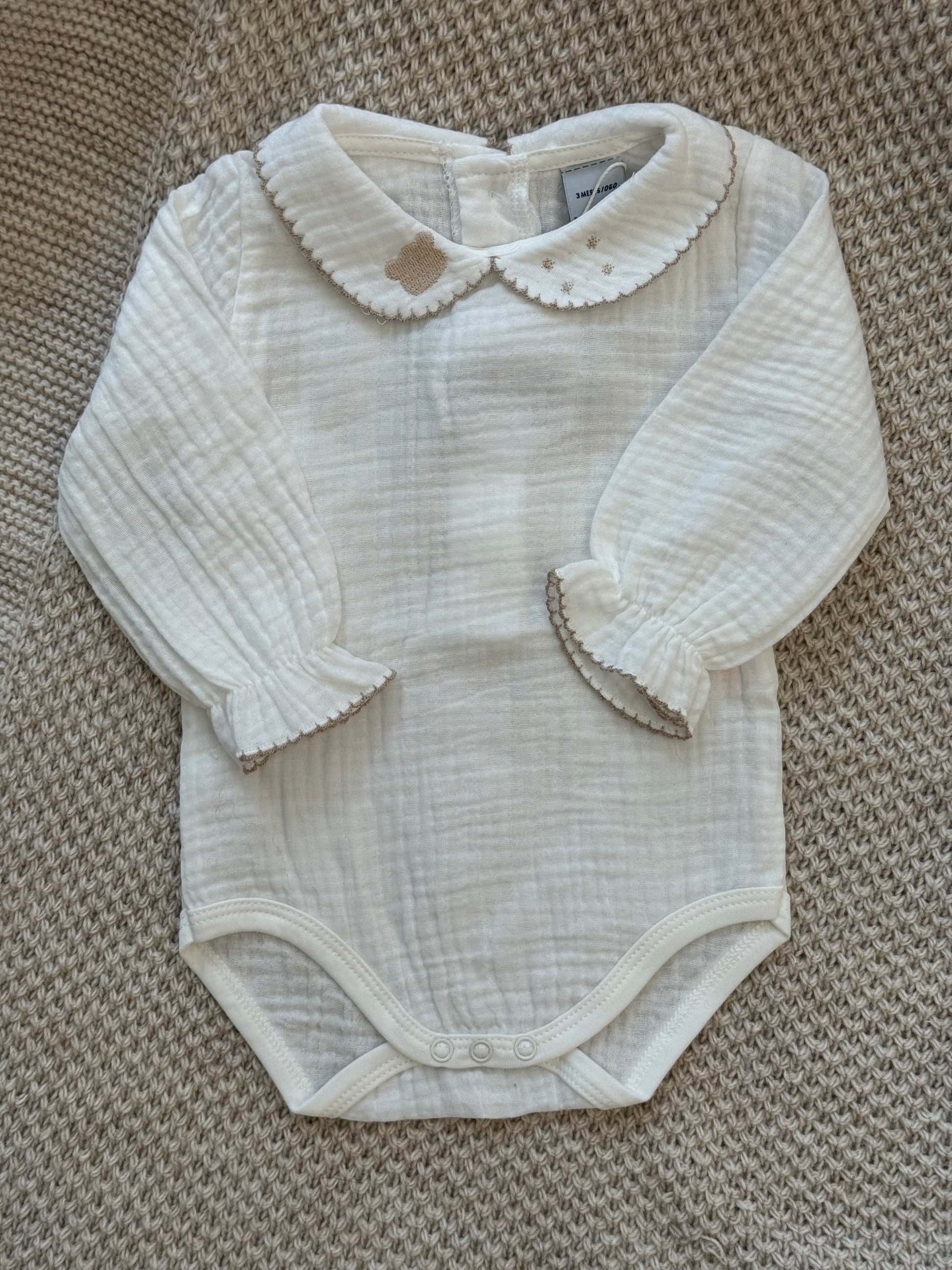 Salopette in misto lana ideale sia per lui che per lei body in cotone con ricamo teddy.