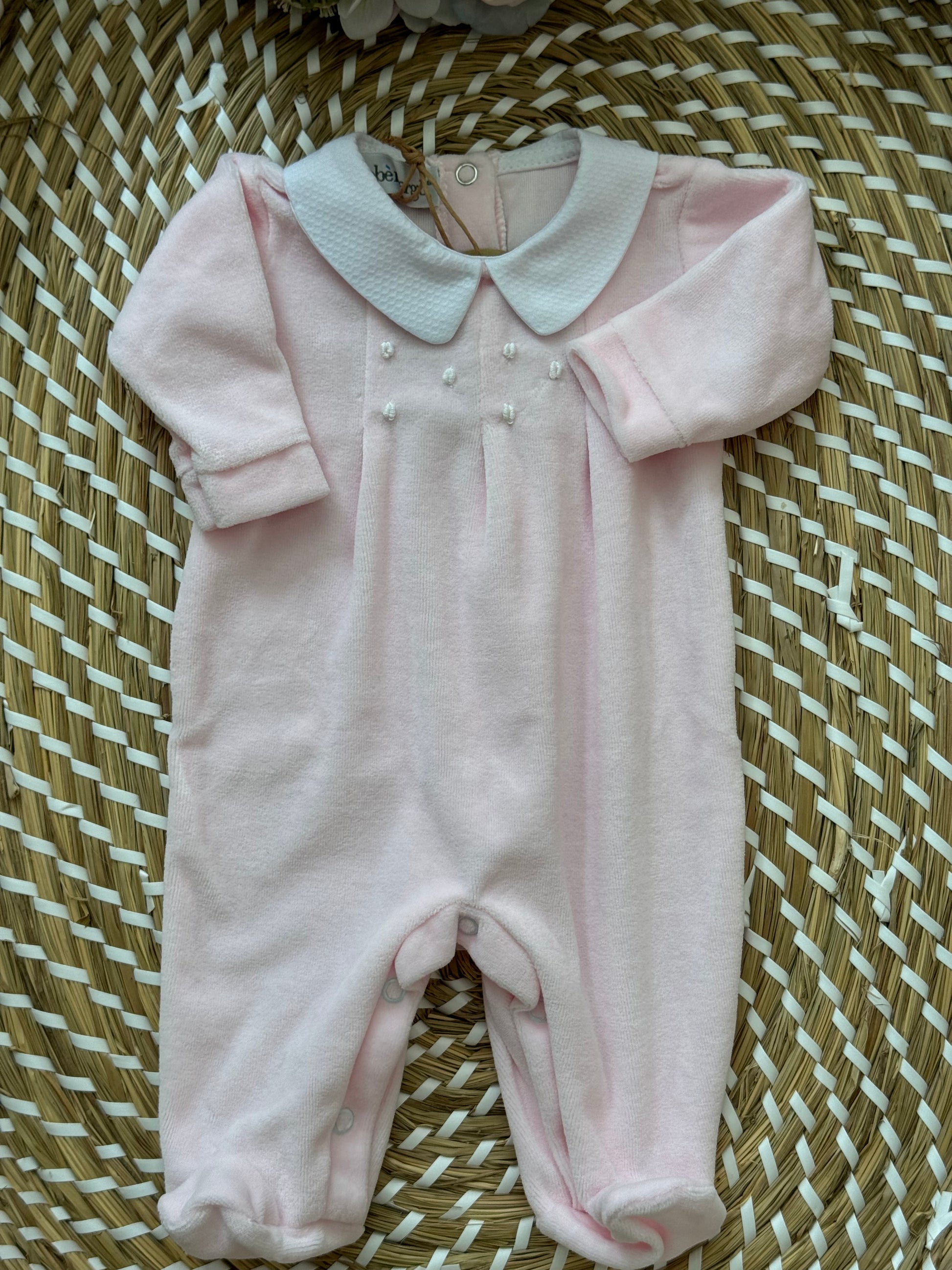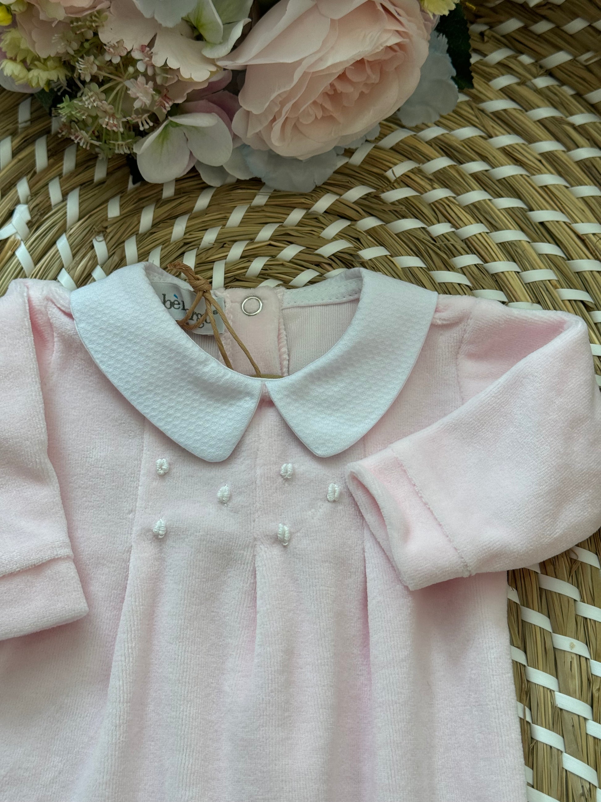 Tutina in ciniglia con ricamo Chicco di riso fatto a mano.