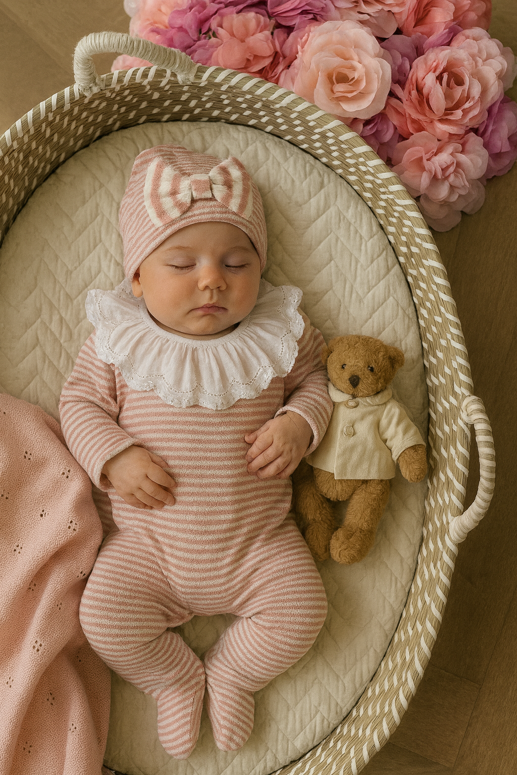 Tutina in finissimo filo di cotone con il suo cappellino in coordinato