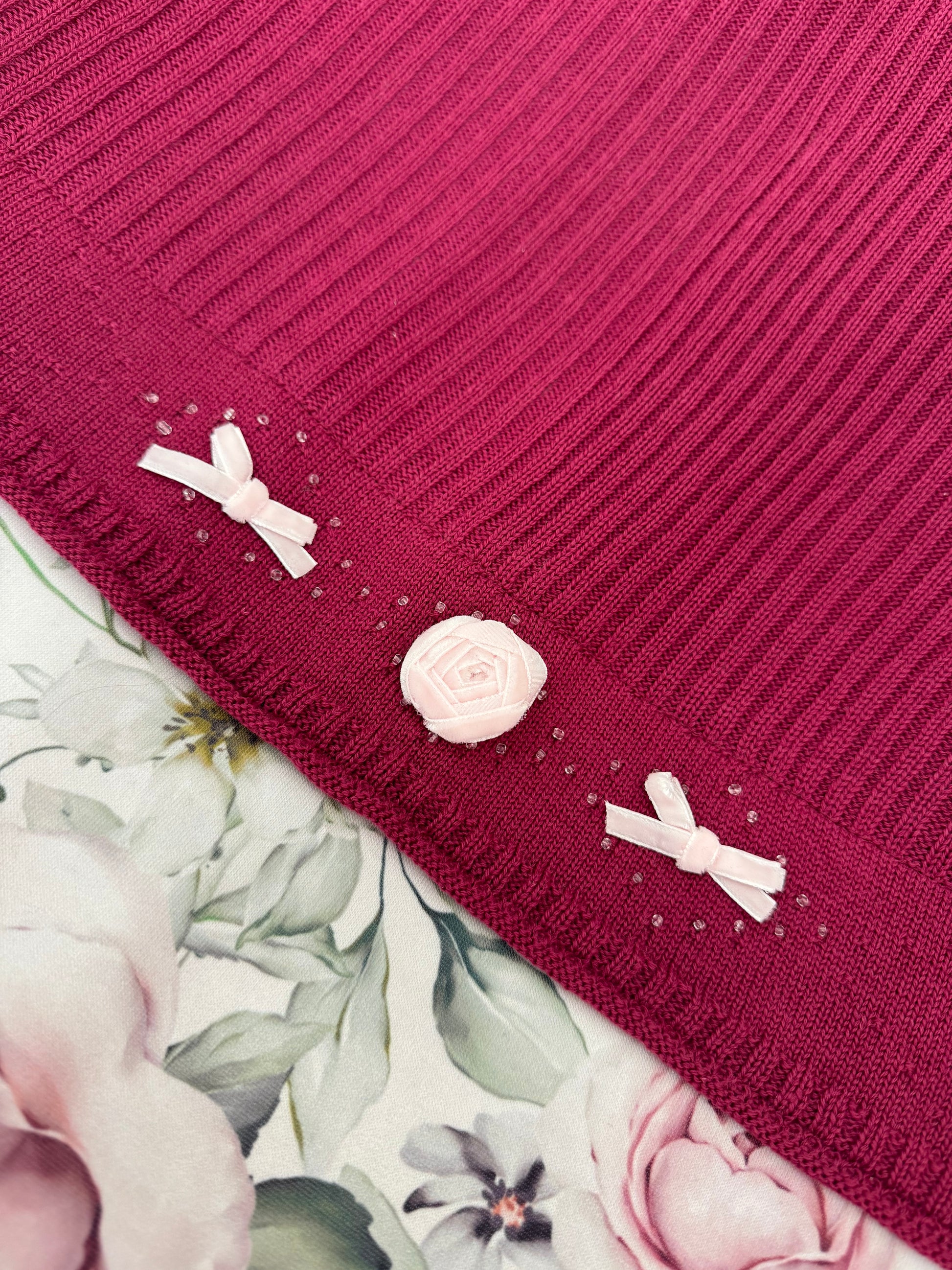 Il completino è un delizioso coordinato in maglia misto lana color magenta.