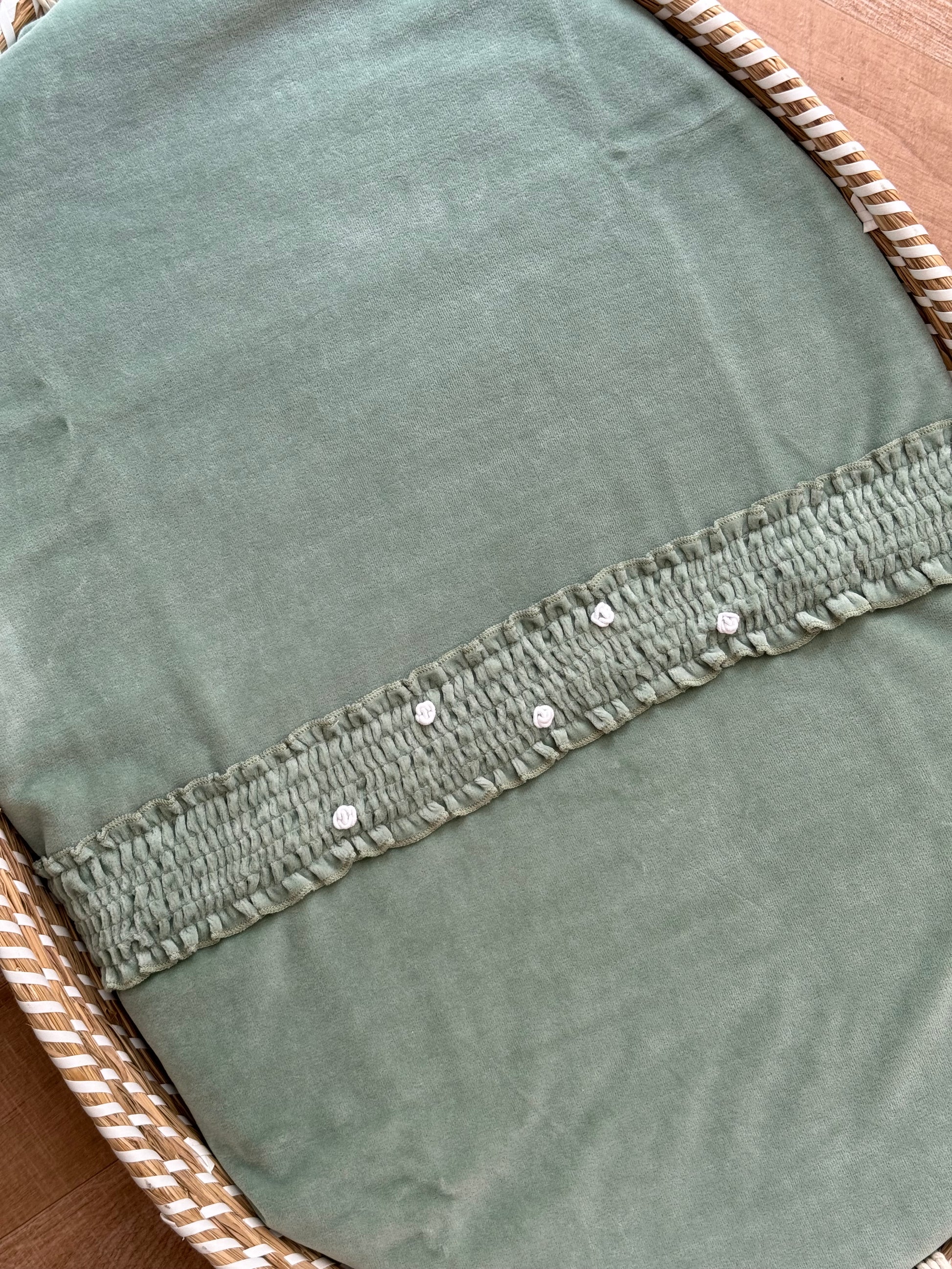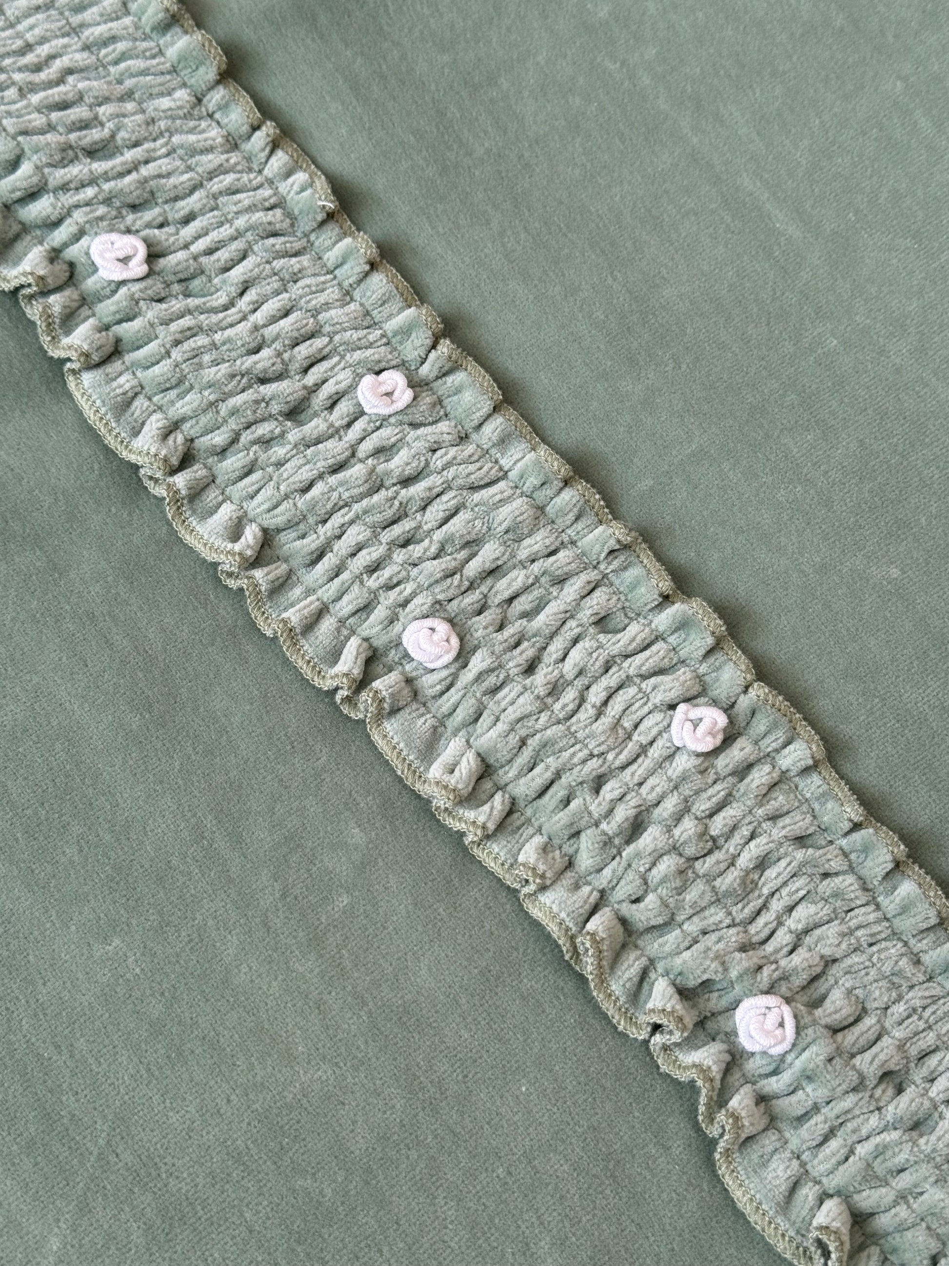con ricamo punto a smock e boccioli di rosa ricamati a mano.