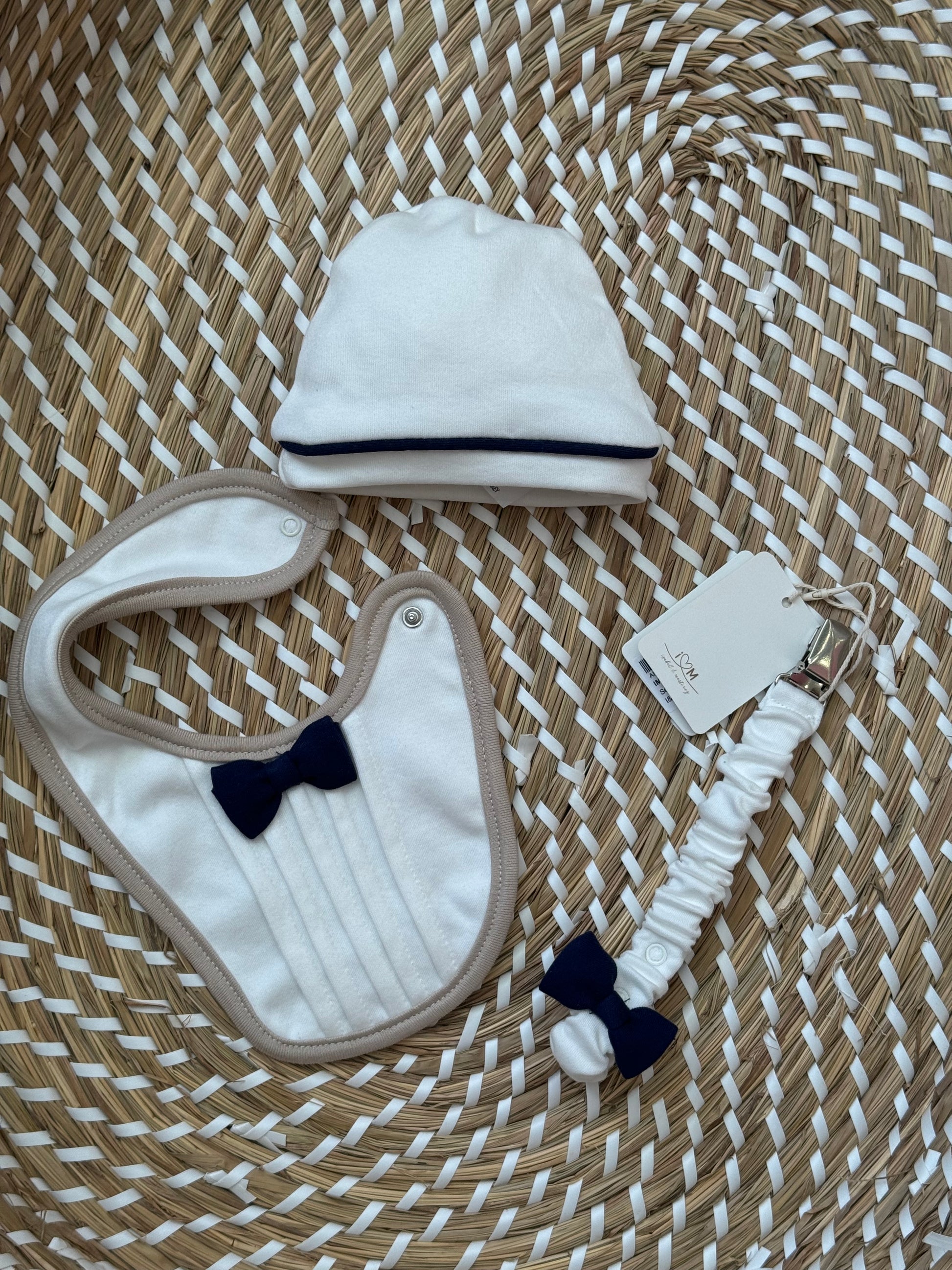 coperta, box con bavetta, cappellino e porta ciuccio.