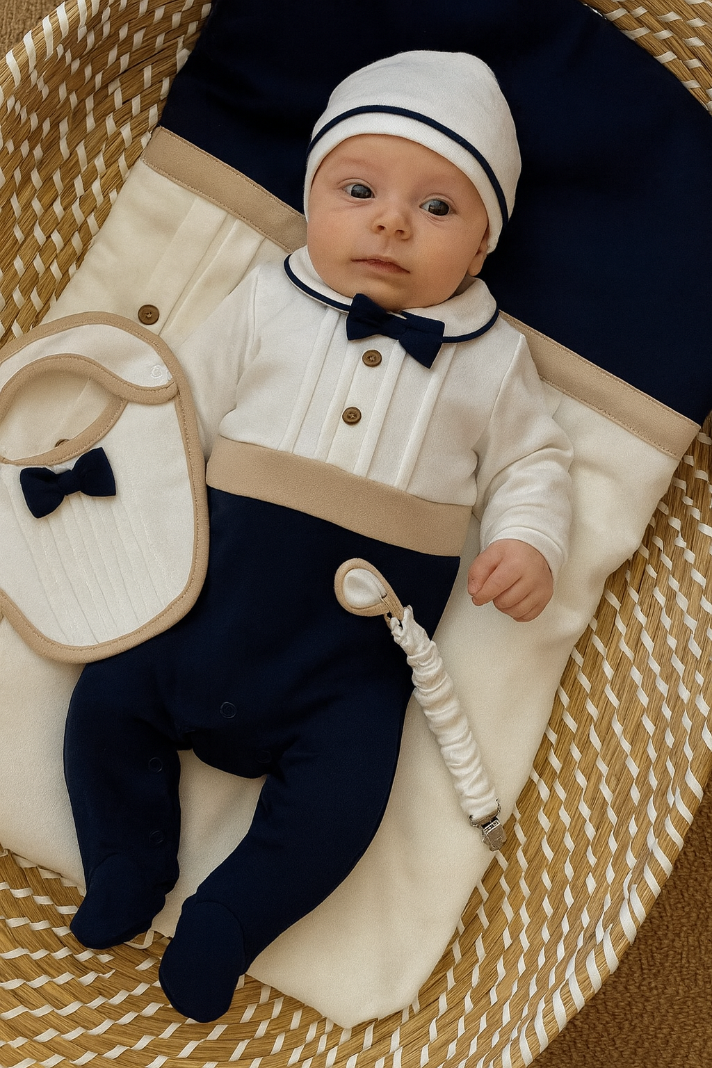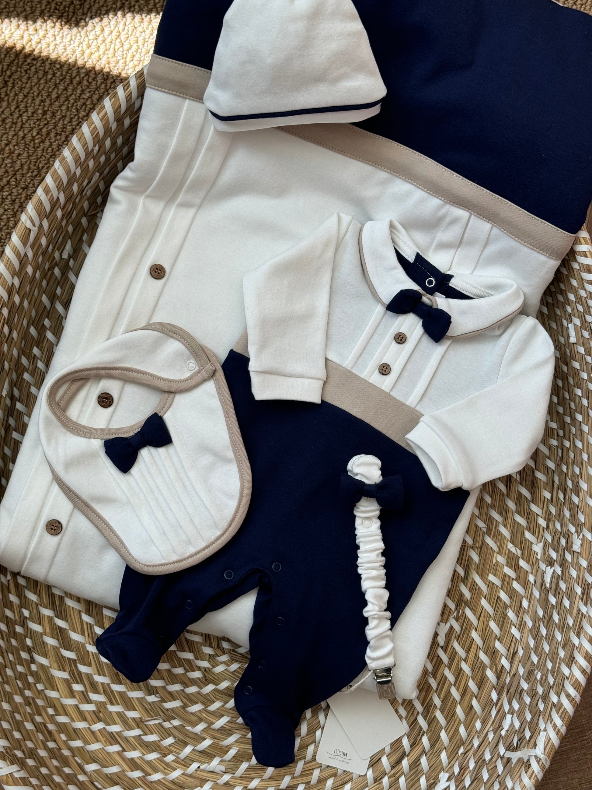 Uscita clinica in caldo cotone composta da: tutina, coperta, cappellino, porta ciuccio e navetta tutto in coordinato